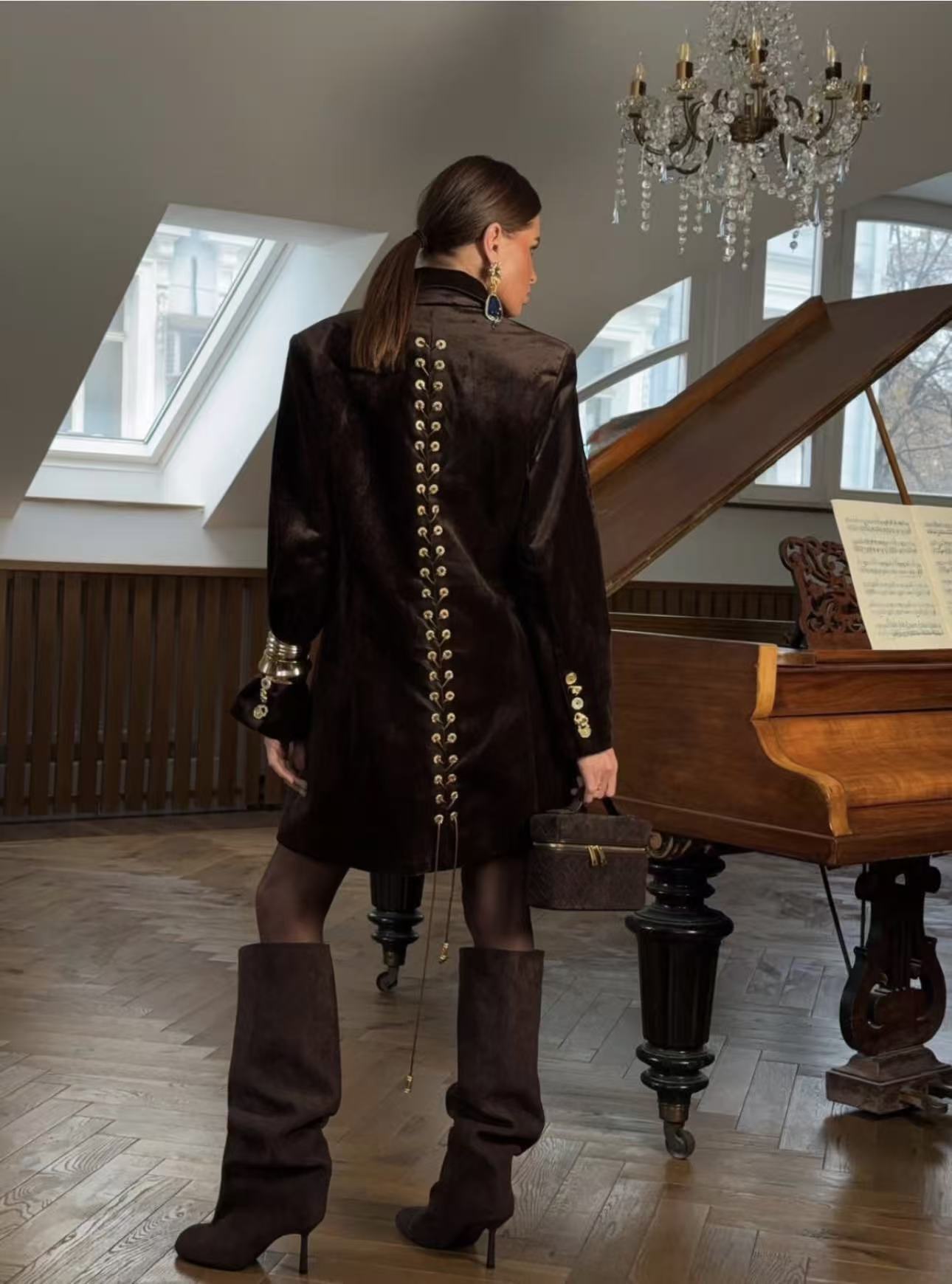 这款衣服是AAAAA 1:1 质量 (非常棒). 使用了和原版一模一样的材料. 商标部分也保持了和Schiaparelli一样. 图片拍摄是实物衣服拍摄, 您所收到的实物保证和我们图片一模一样.