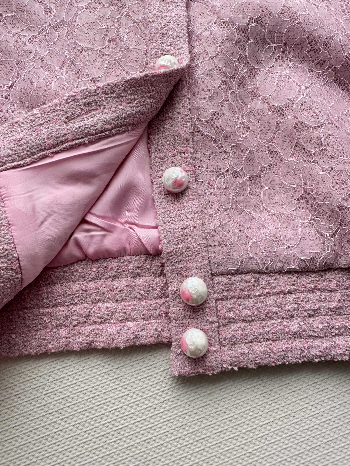 这款衣服是AAAAA 1:1 质量 (非常棒). 使用了和原版一模一样的材料. 商标部分也保持了和香奈儿/Chanel一样. 图片拍摄是实物衣服拍摄, 您所收到的实物保证和我们图片一模一样.