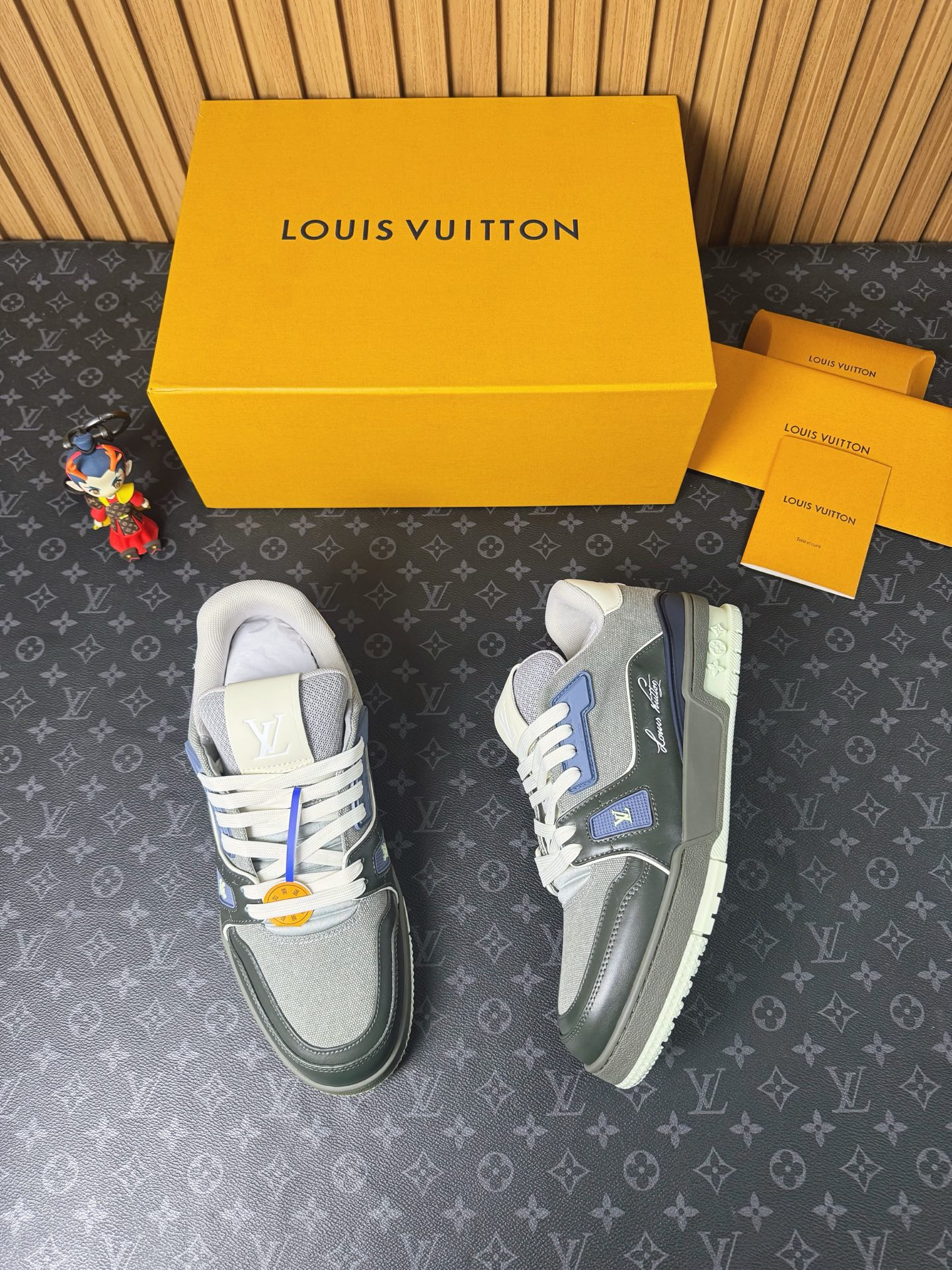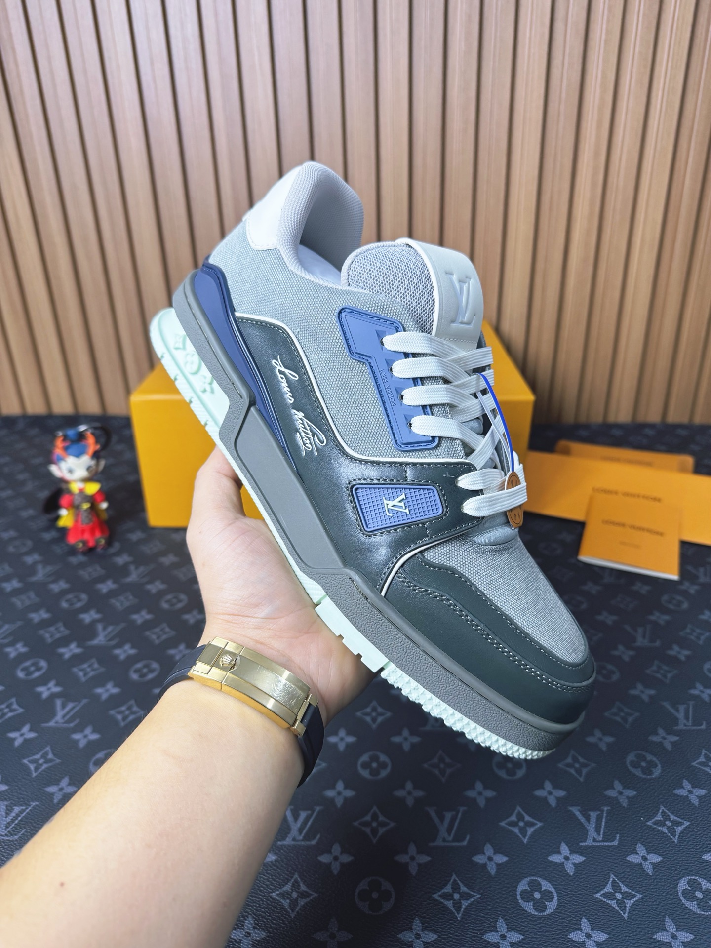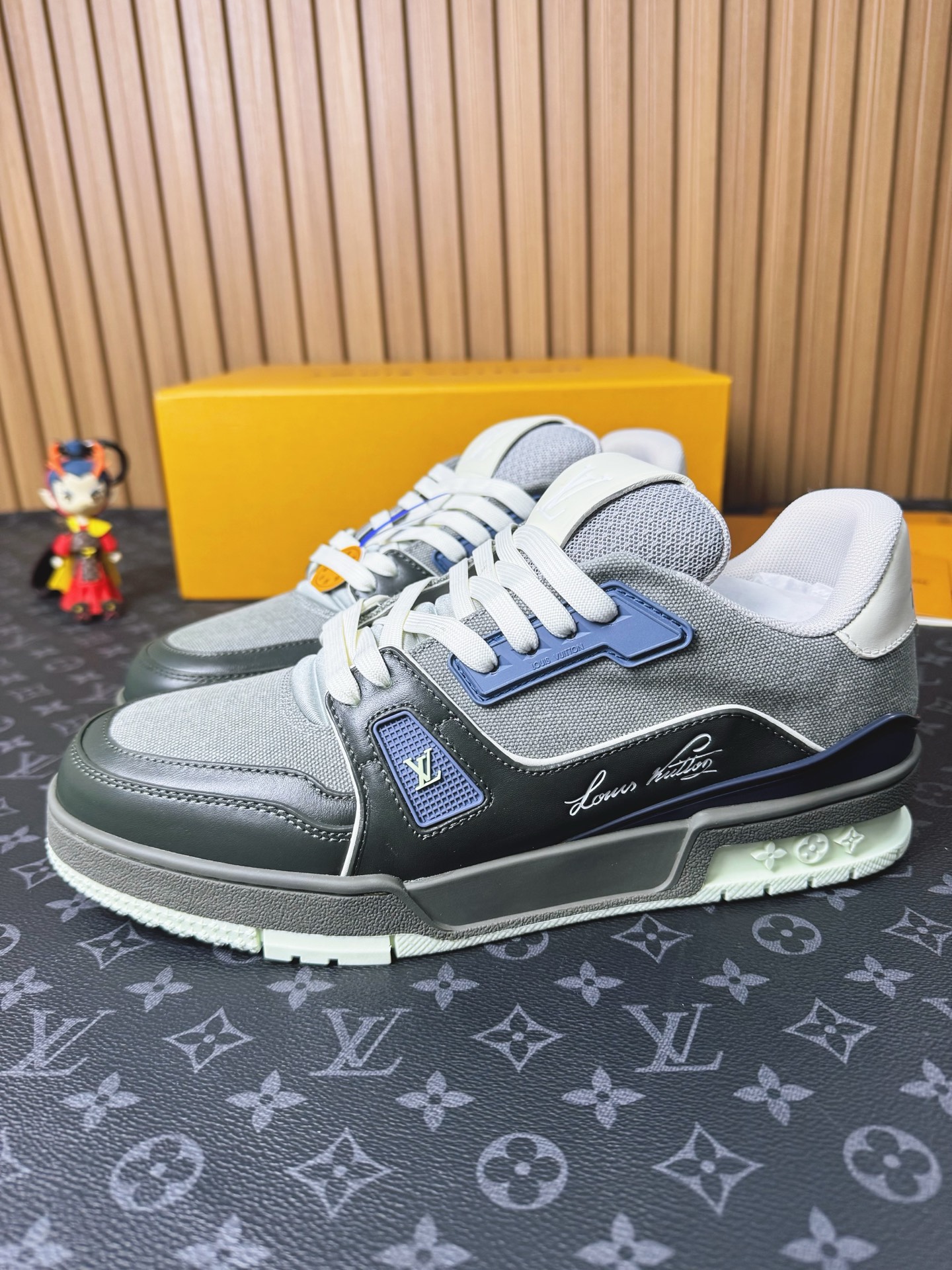 这款鞋子是AAAAA 1:1 质量 (非常棒). 使用了和原版一模一样的材料. 商标部分也保持了和路易威登/Louis Vuitton一样. 图片拍摄是实物鞋子拍摄, 您所收到的实物保证和我们图片一模一样.
