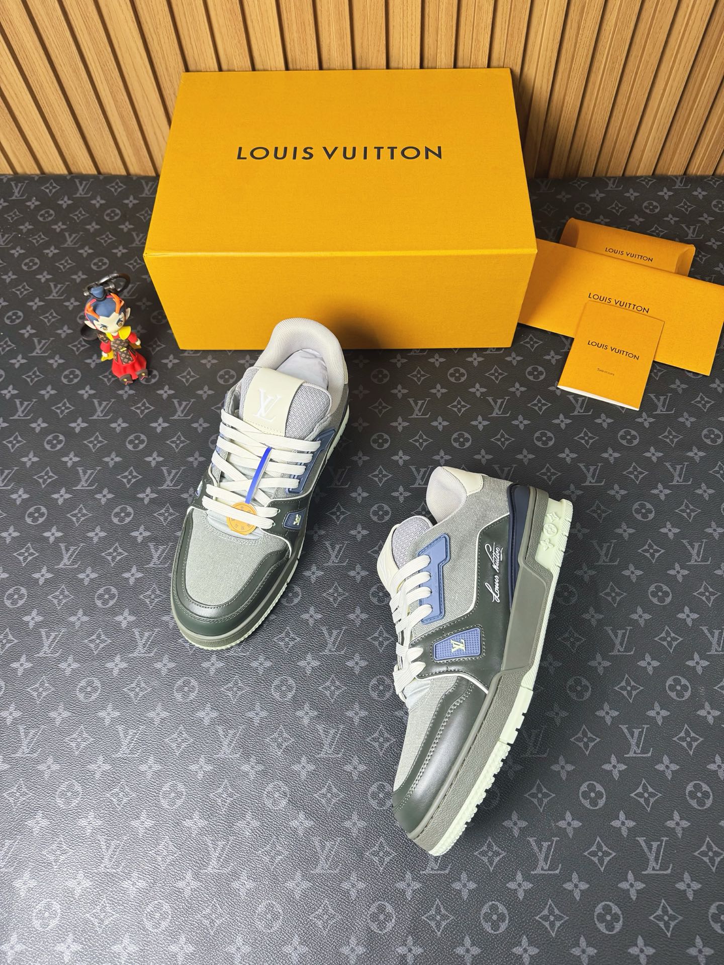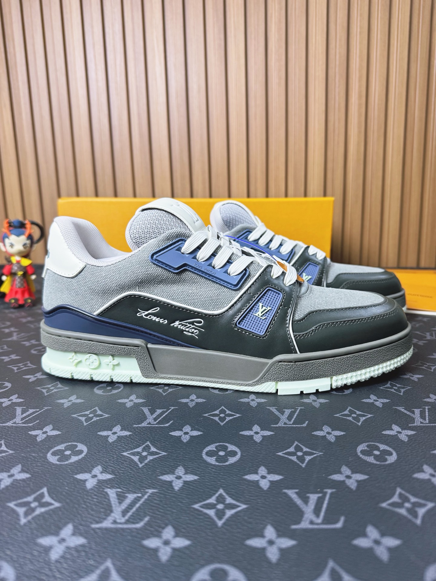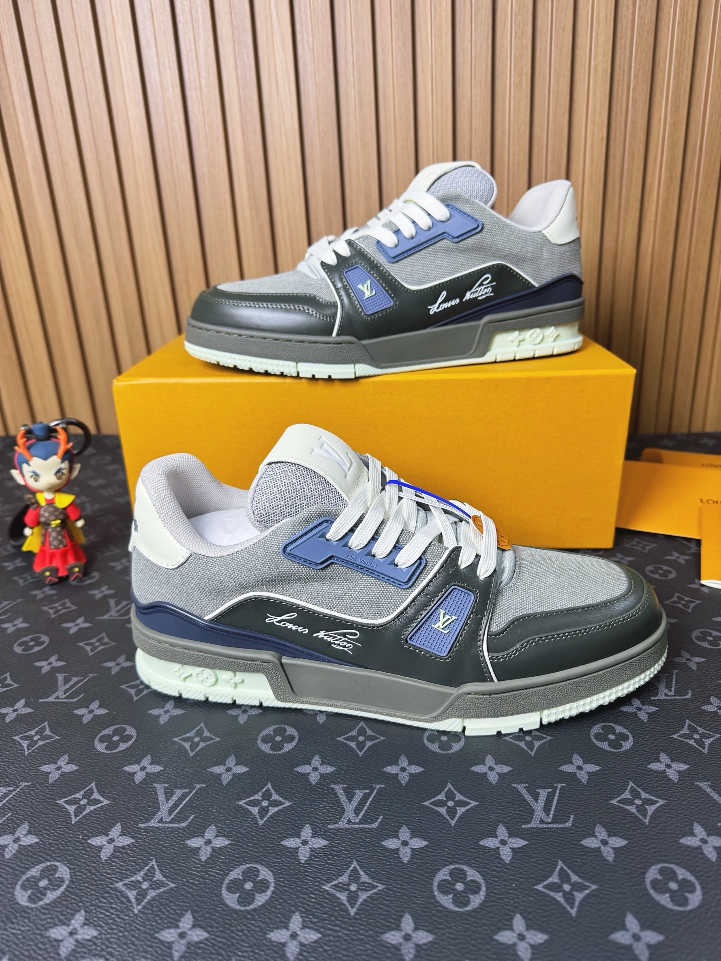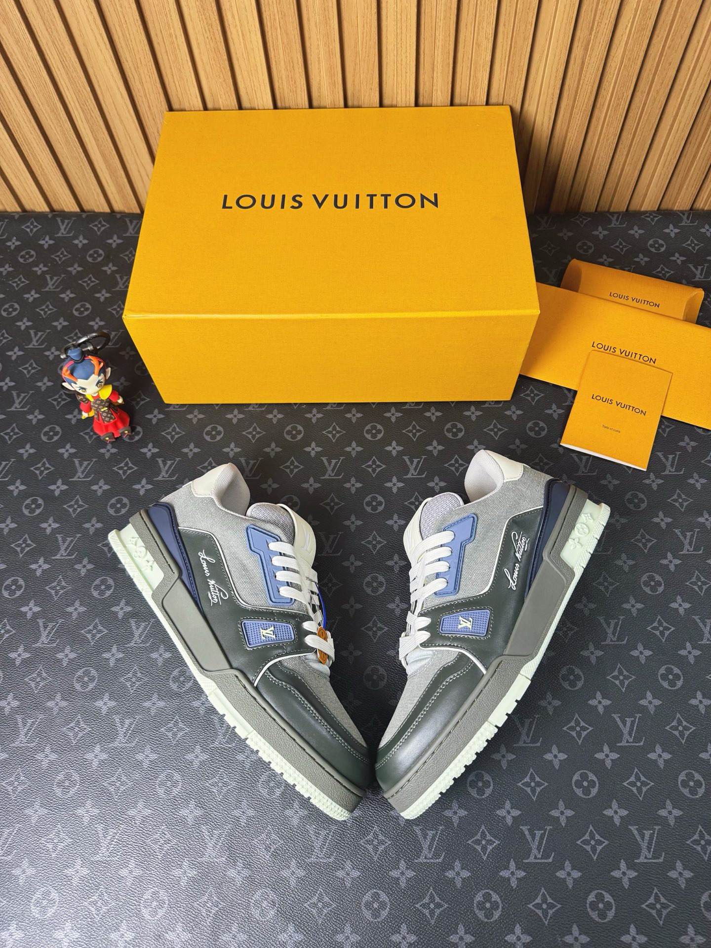 这款鞋子是AAAAA 1:1 质量 (非常棒). 使用了和原版一模一样的材料. 商标部分也保持了和路易威登/Louis Vuitton一样. 图片拍摄是实物鞋子拍摄, 您所收到的实物保证和我们图片一模一样.