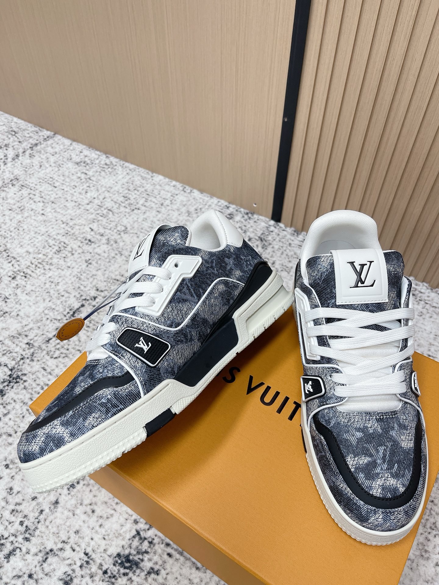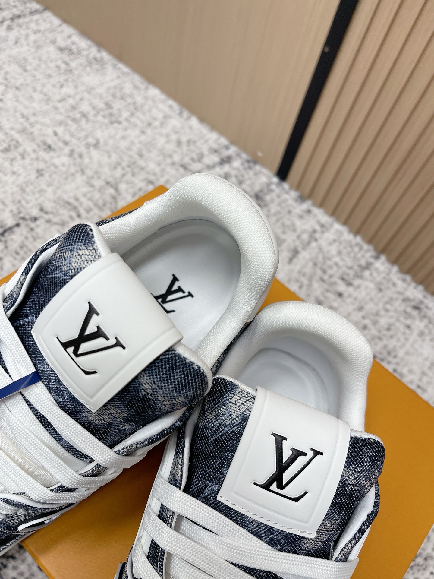 这款鞋子是AAAAA 1:1 质量 (非常棒). 使用了和原版一模一样的材料. 商标部分也保持了和路易威登/Louis Vuitton一样. 图片拍摄是实物鞋子拍摄, 您所收到的实物保证和我们图片一模一样.