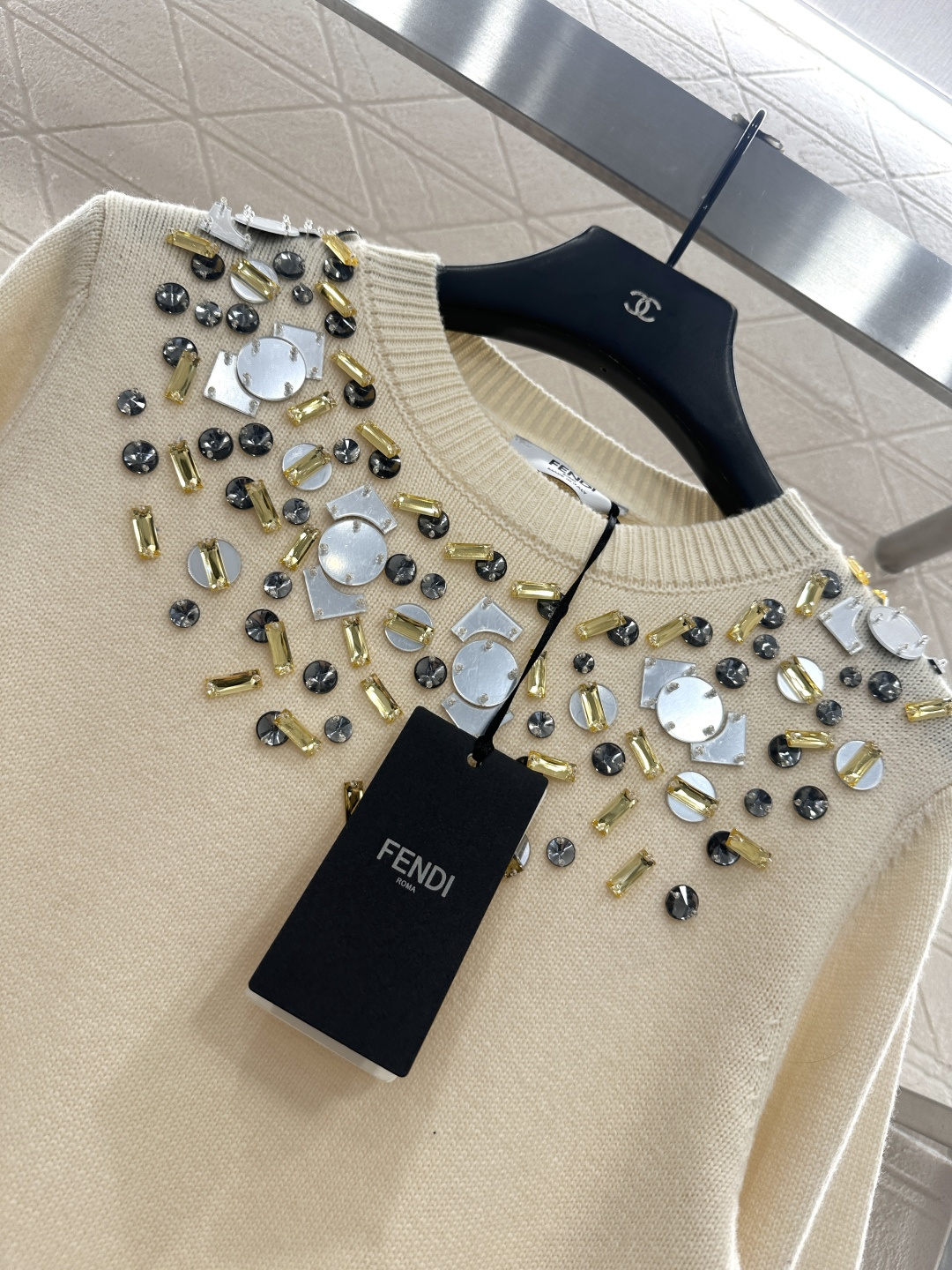 这款衣服是AAAAA 1:1 质量 (非常棒). 使用了和原版一模一样的材料. 商标部分也保持了和芬迪/Fendi一样. 图片拍摄是实物衣服拍摄, 您所收到的实物保证和我们图片一模一样.