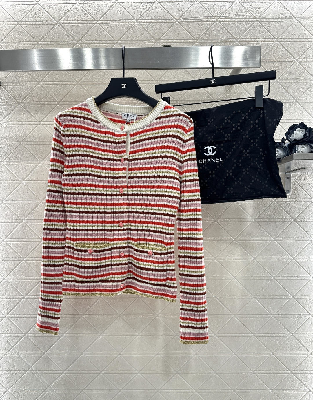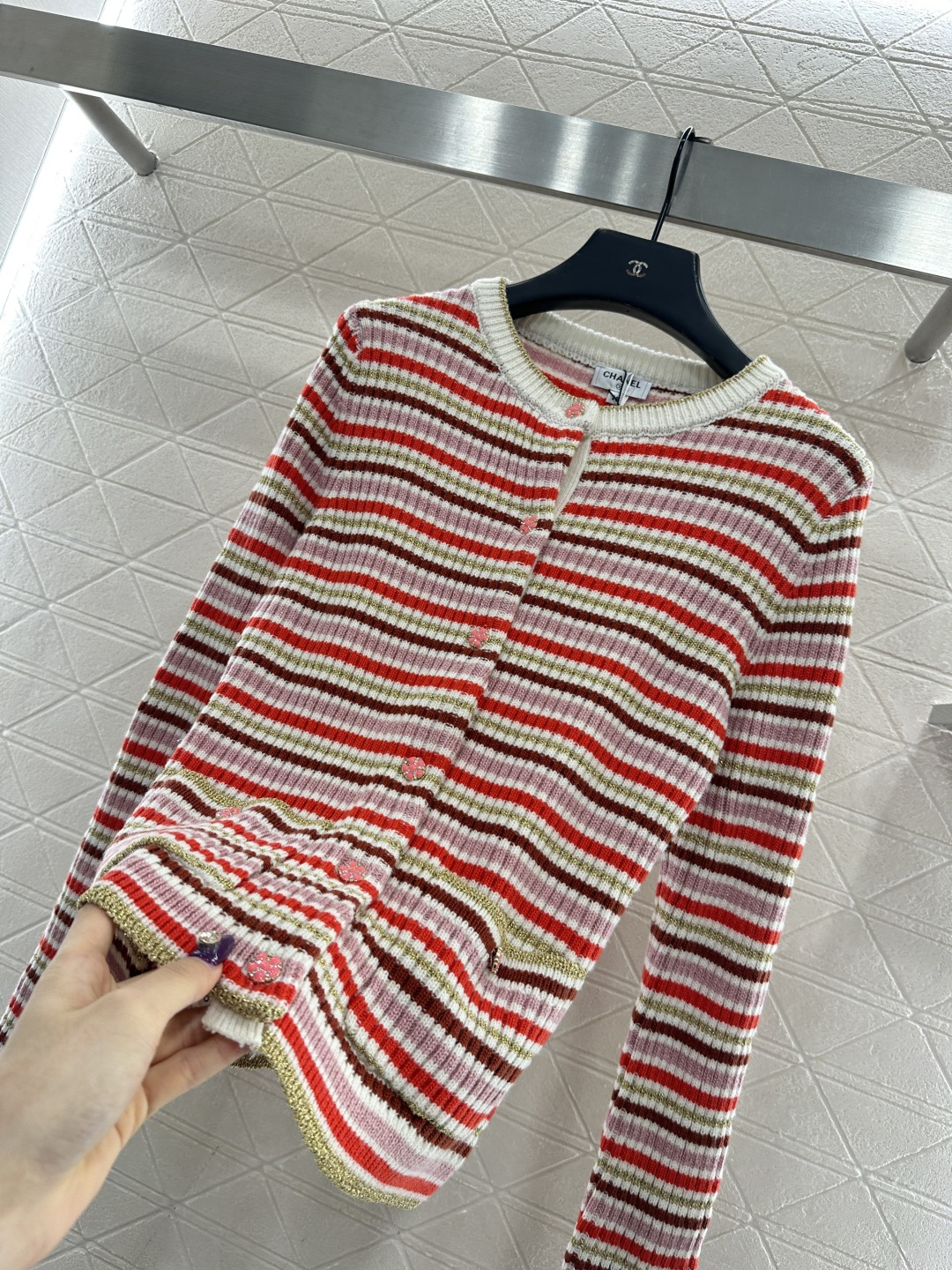 这款衣服是AAAAA 1:1 质量 (非常棒). 使用了和原版一模一样的材料. 商标部分也保持了和香奈儿/Chanel一样. 图片拍摄是实物衣服拍摄, 您所收到的实物保证和我们图片一模一样.