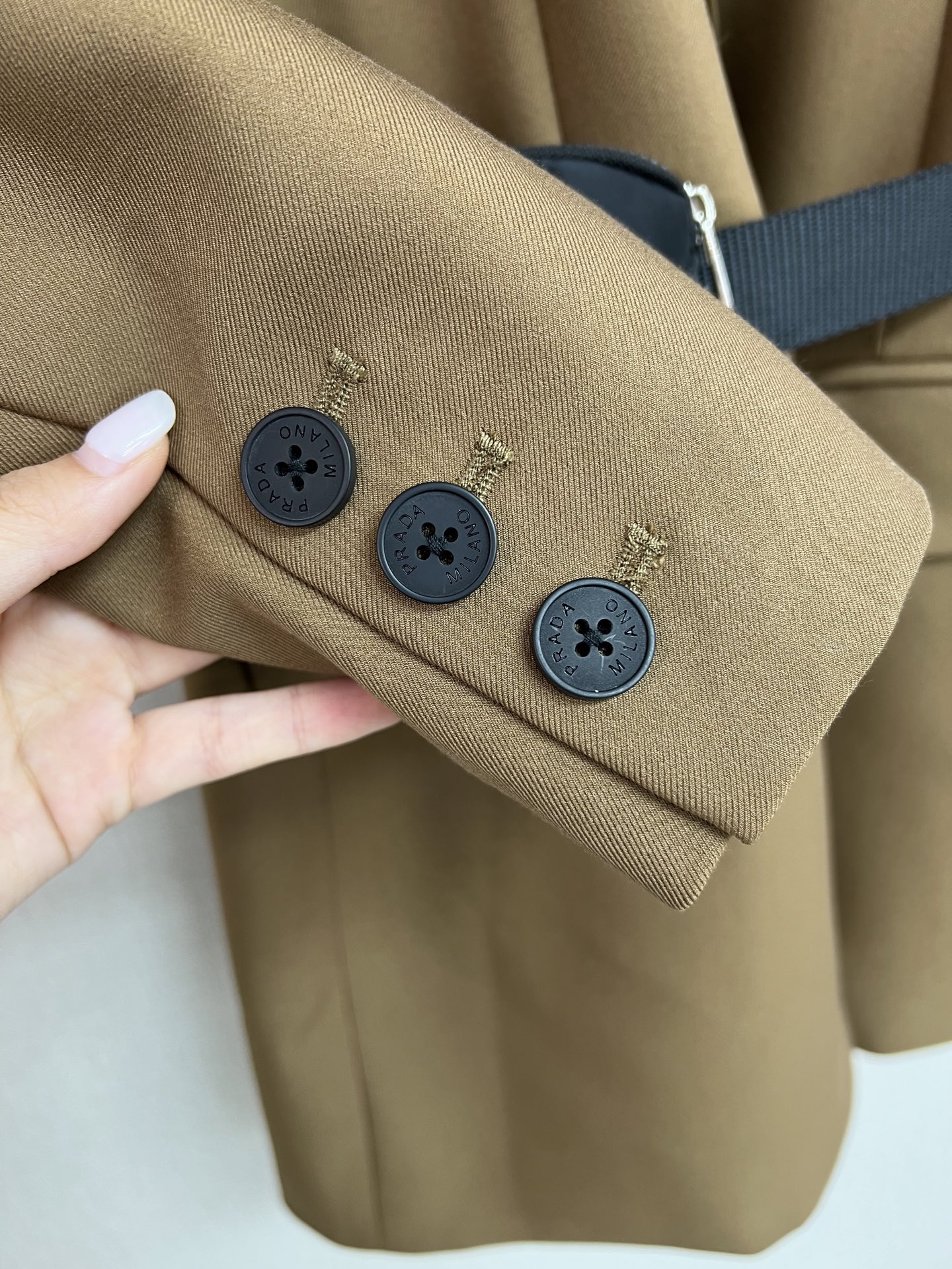 这款衣服是AAAAA 1:1 质量 (非常棒). 使用了和原版一模一样的材料. 商标部分也保持了和普拉达/Prada一样. 图片拍摄是实物衣服拍摄, 您所收到的实物保证和我们图片一模一样.