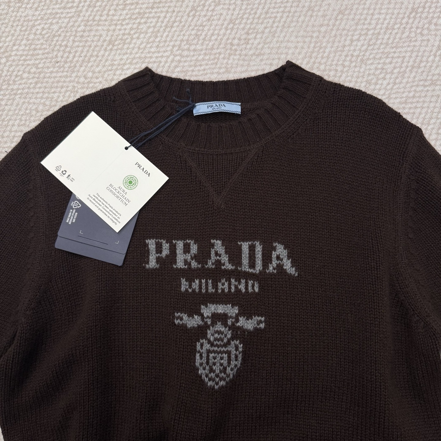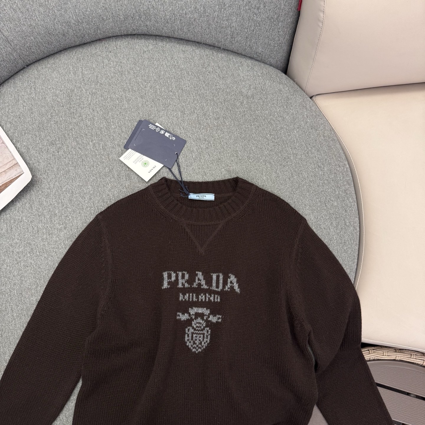 这款衣服是AAAAA 1:1 质量 (非常棒). 使用了和原版一模一样的材料. 商标部分也保持了和普拉达/Prada一样. 图片拍摄是实物衣服拍摄, 您所收到的实物保证和我们图片一模一样.