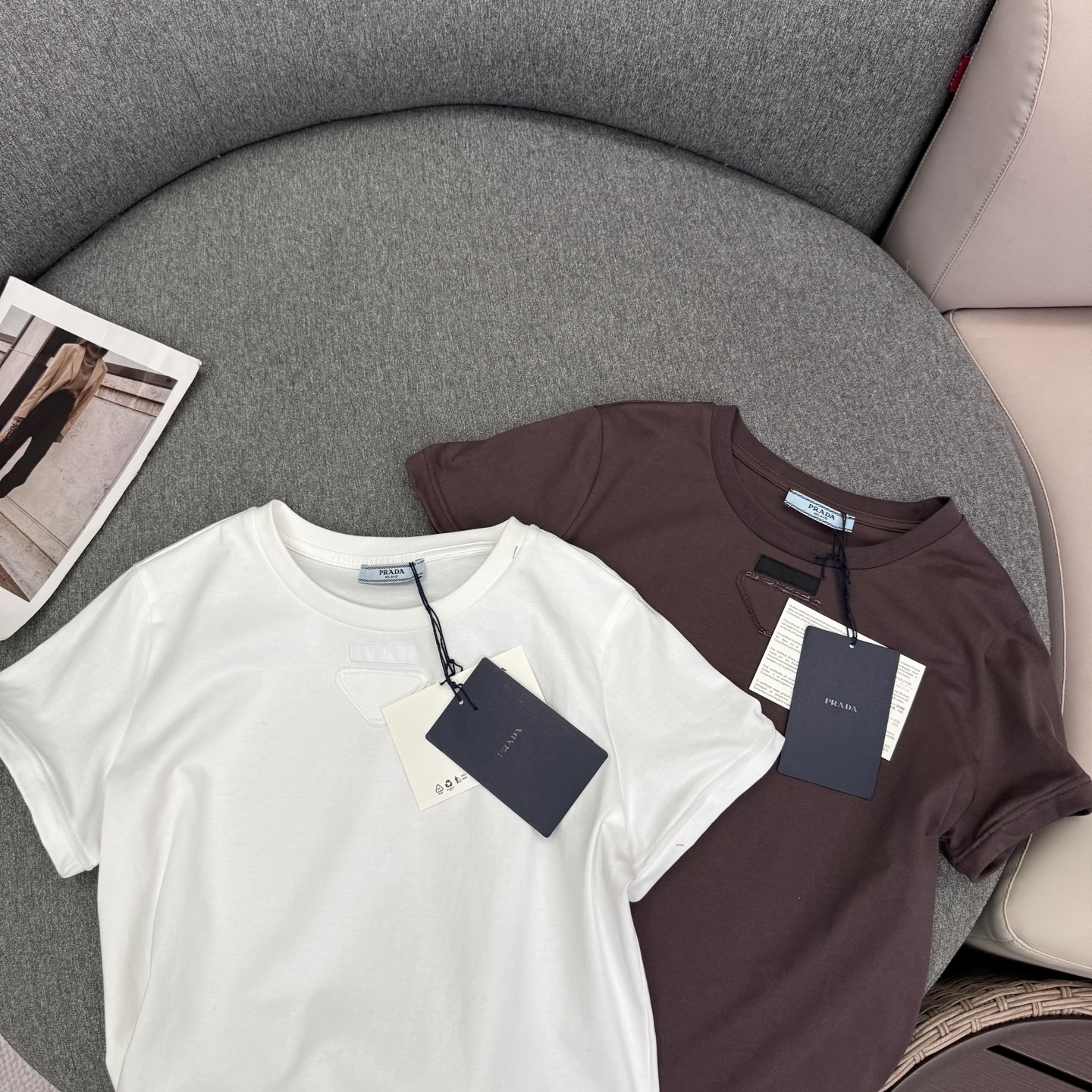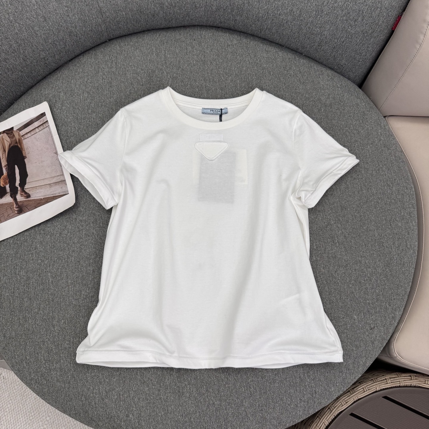 这款衣服是AAAAA 1:1 质量 (非常棒). 使用了和原版一模一样的材料. 商标部分也保持了和普拉达/Prada一样. 图片拍摄是实物衣服拍摄, 您所收到的实物保证和我们图片一模一样.