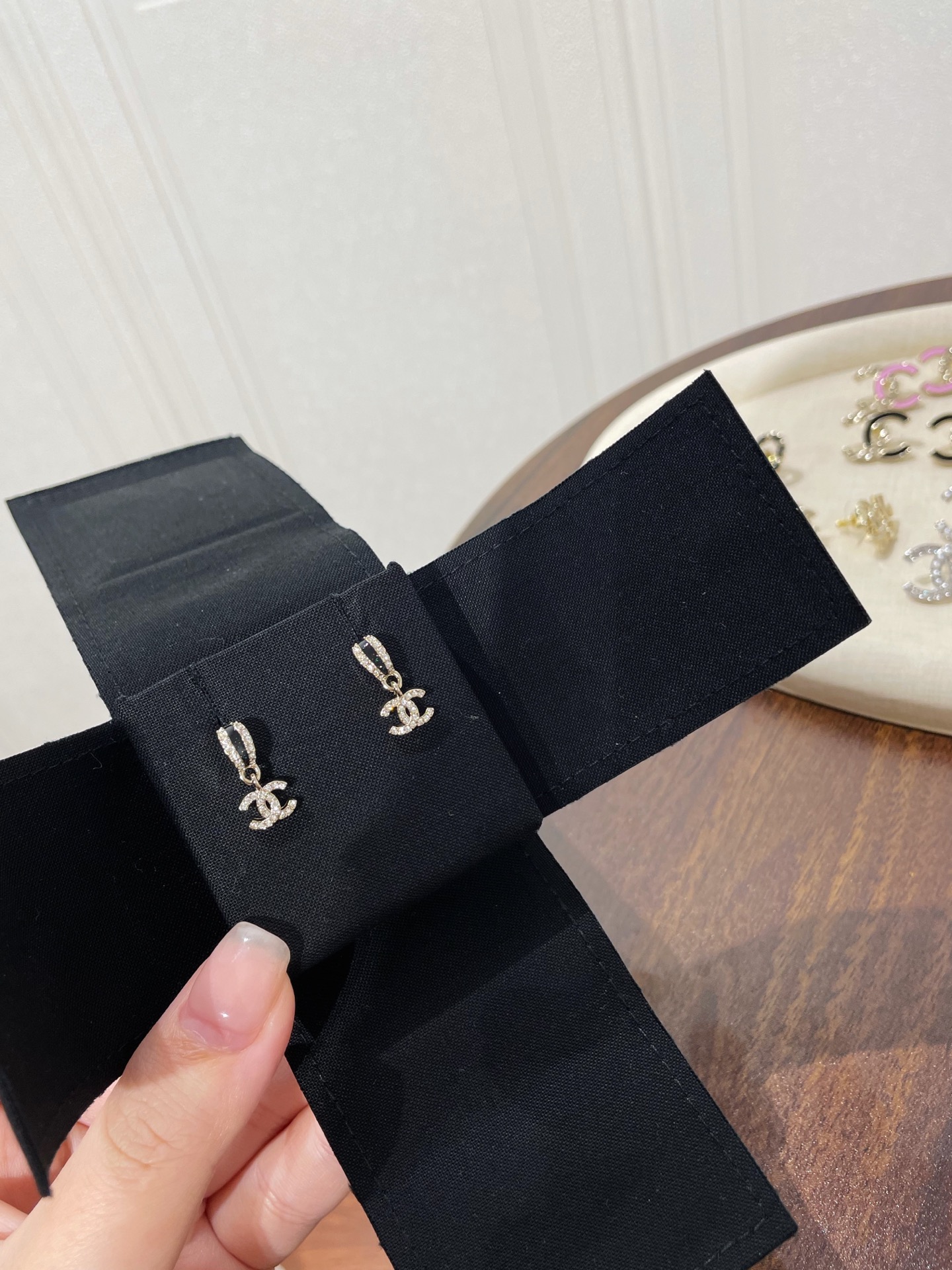 这款首饰是AAAAA 1:1 质量 (非常棒). 使用了和原版一模一样的材料. 商标部分也保持了和香奈儿/Chanel一样. 图片拍摄是实物首饰拍摄, 您所收到的实物保证和我们图片一模一样.