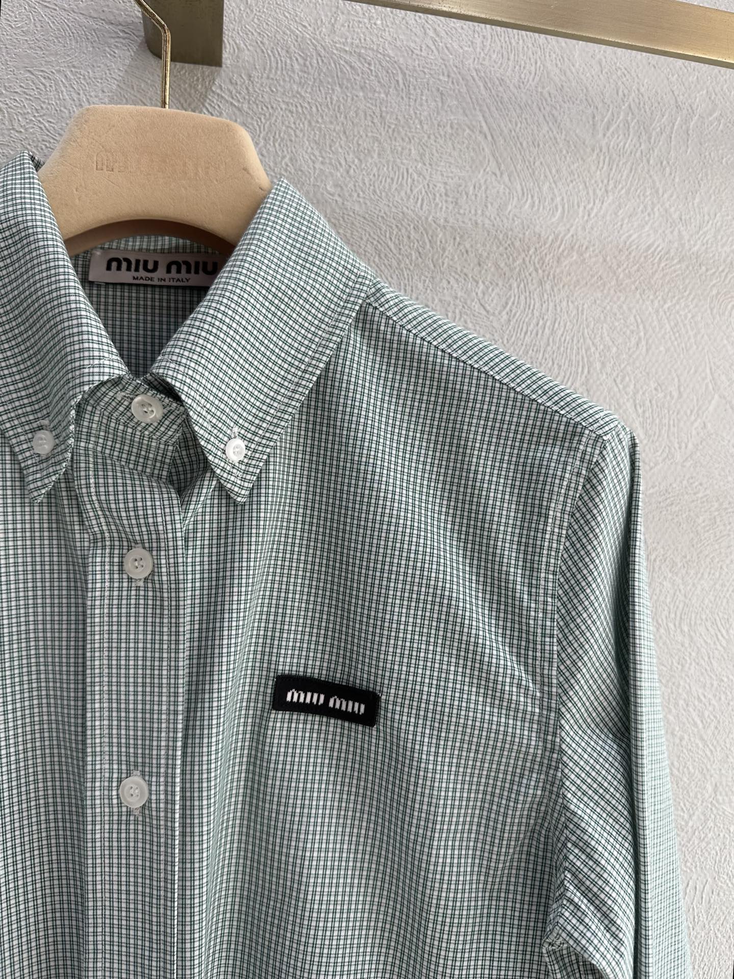 这款衣服是AAAAA 1:1 质量 (非常棒). 使用了和原版一模一样的材料. 商标部分也保持了和缪缪/Miu Miu一样. 图片拍摄是实物衣服拍摄, 您所收到的实物保证和我们图片一模一样.