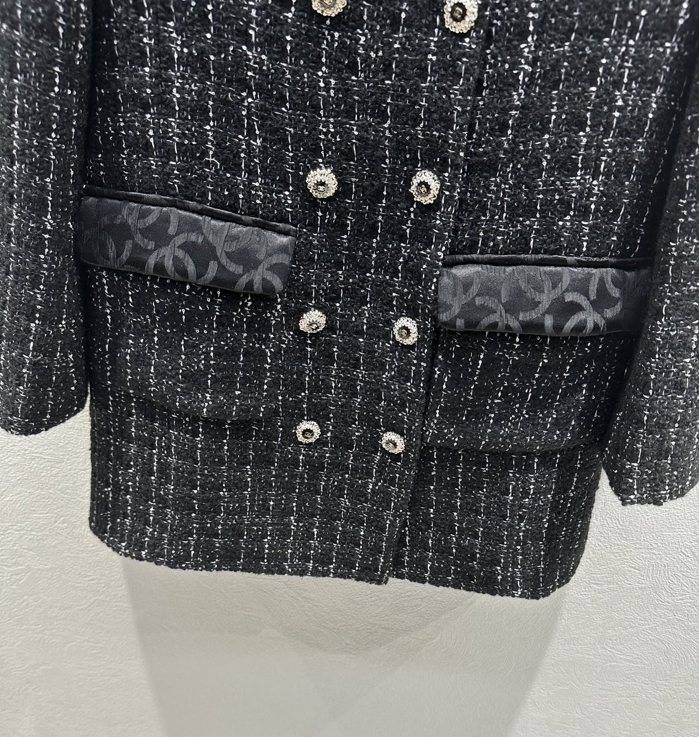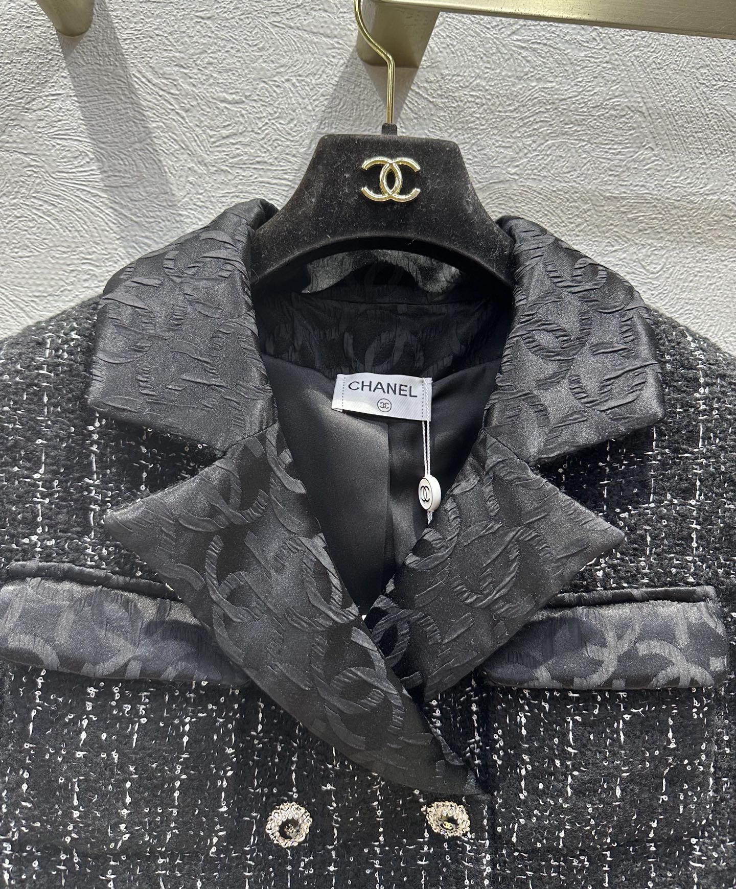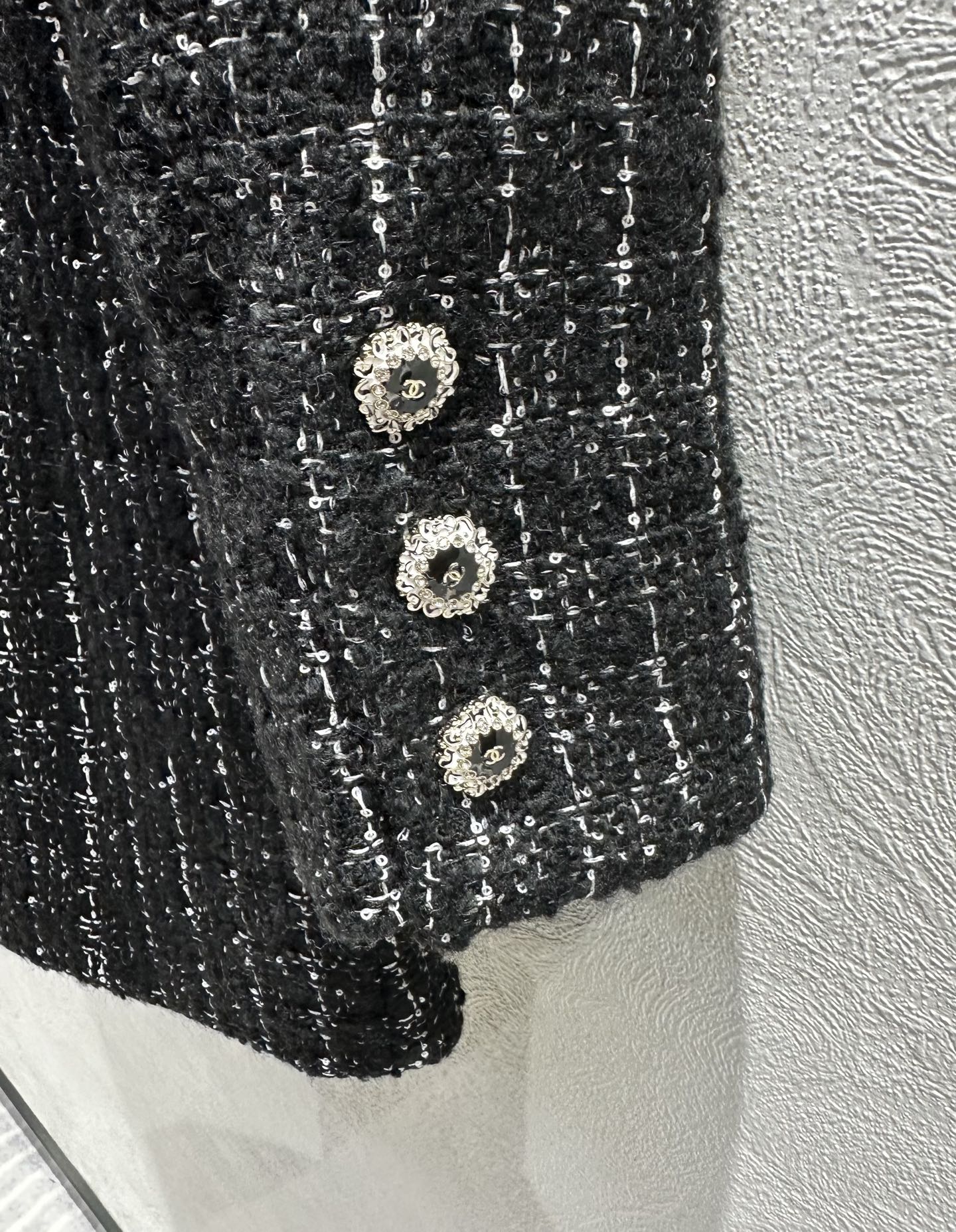 这款衣服是AAAAA 1:1 质量 (非常棒). 使用了和原版一模一样的材料. 商标部分也保持了和香奈儿/Chanel一样. 图片拍摄是实物衣服拍摄, 您所收到的实物保证和我们图片一模一样.