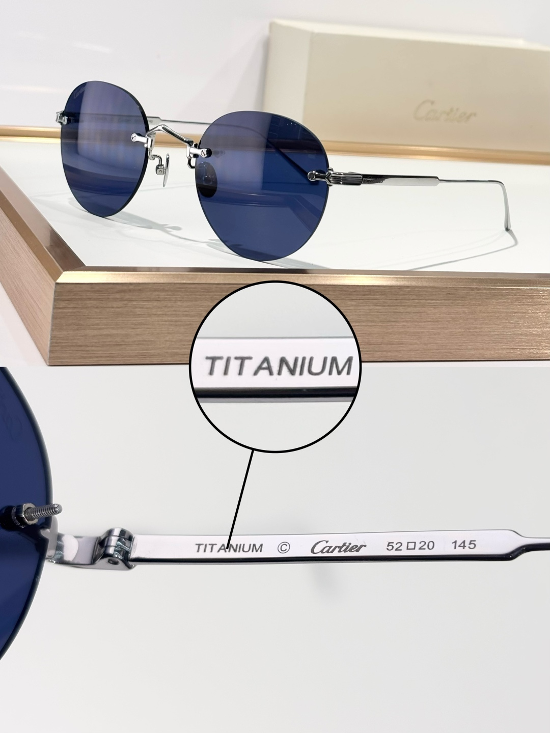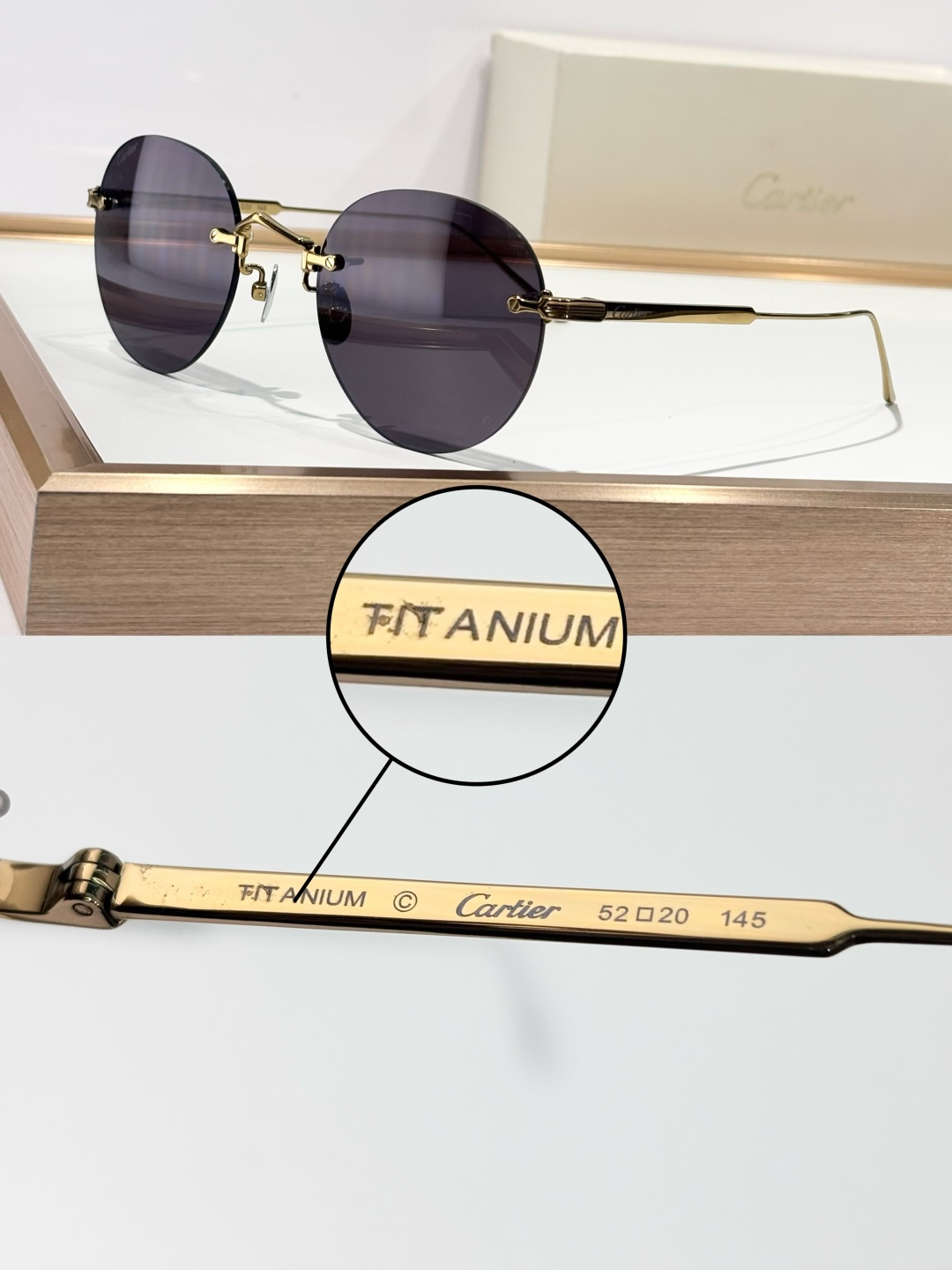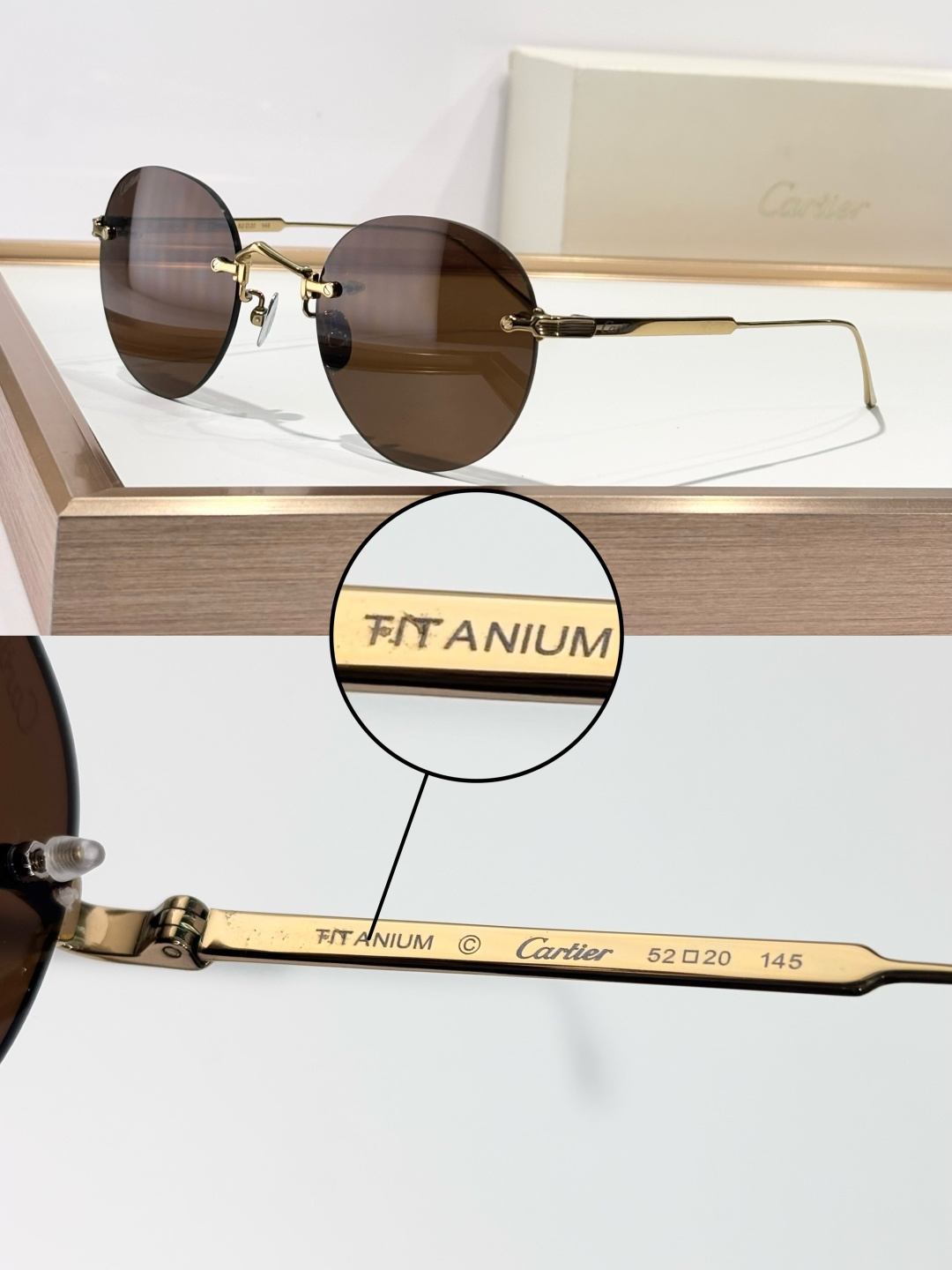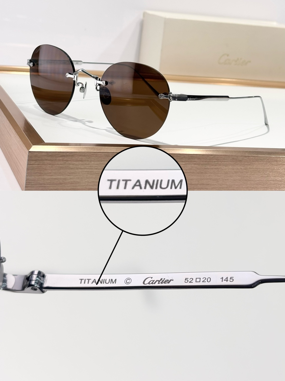 这款太阳眼镜是AAAAA 1:1 质量 (非常棒). 使用了和原版一模一样的材料. 商标部分也保持了和卡地亚/Cartier一样. 图片拍摄是实物太阳眼镜拍摄, 您所收到的实物保证和我们图片一模一样.