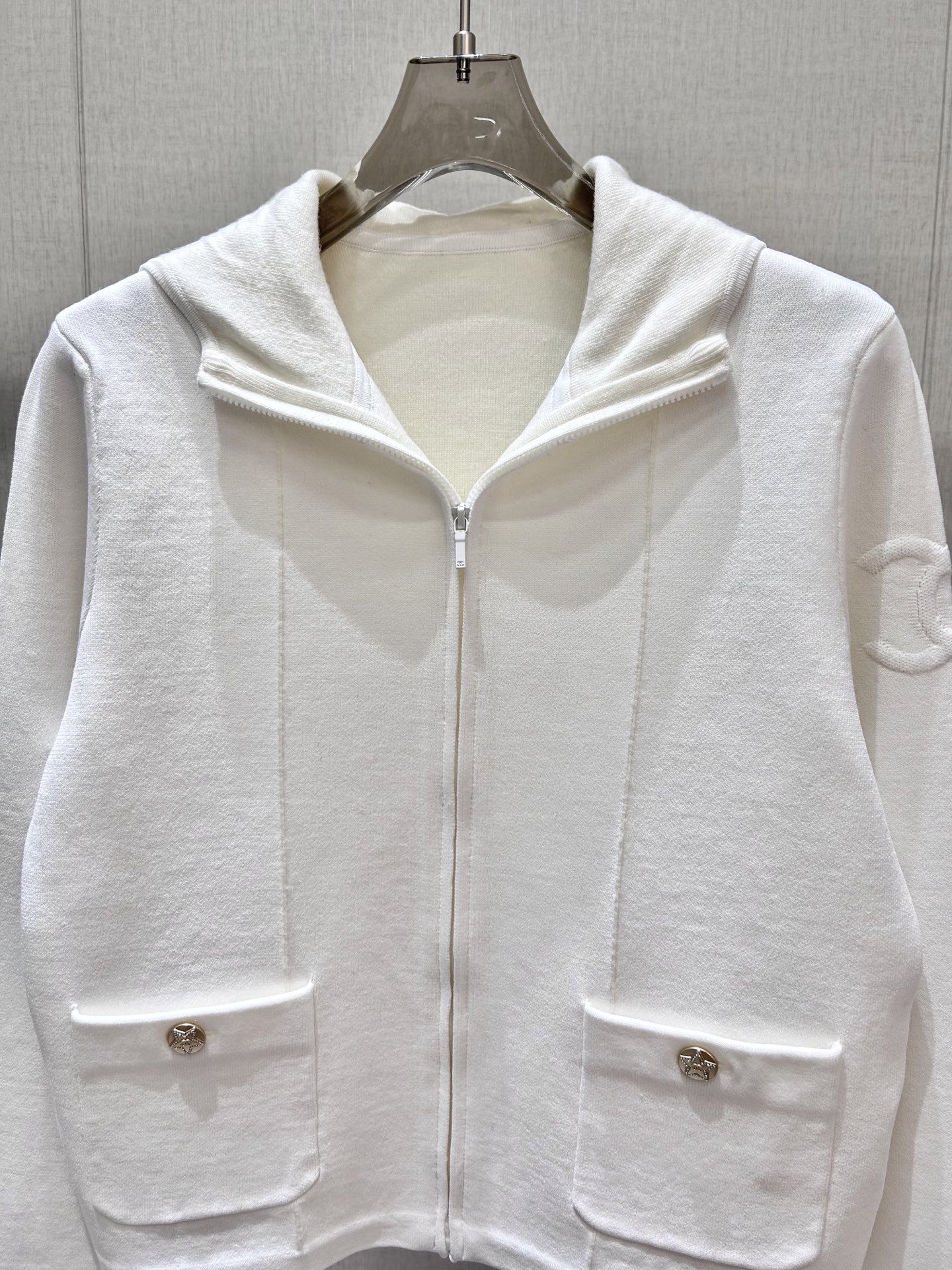 这款衣服是AAAAA 1:1 质量 (非常棒). 使用了和原版一模一样的材料. 商标部分也保持了和香奈儿/Chanel一样. 图片拍摄是实物衣服拍摄, 您所收到的实物保证和我们图片一模一样.