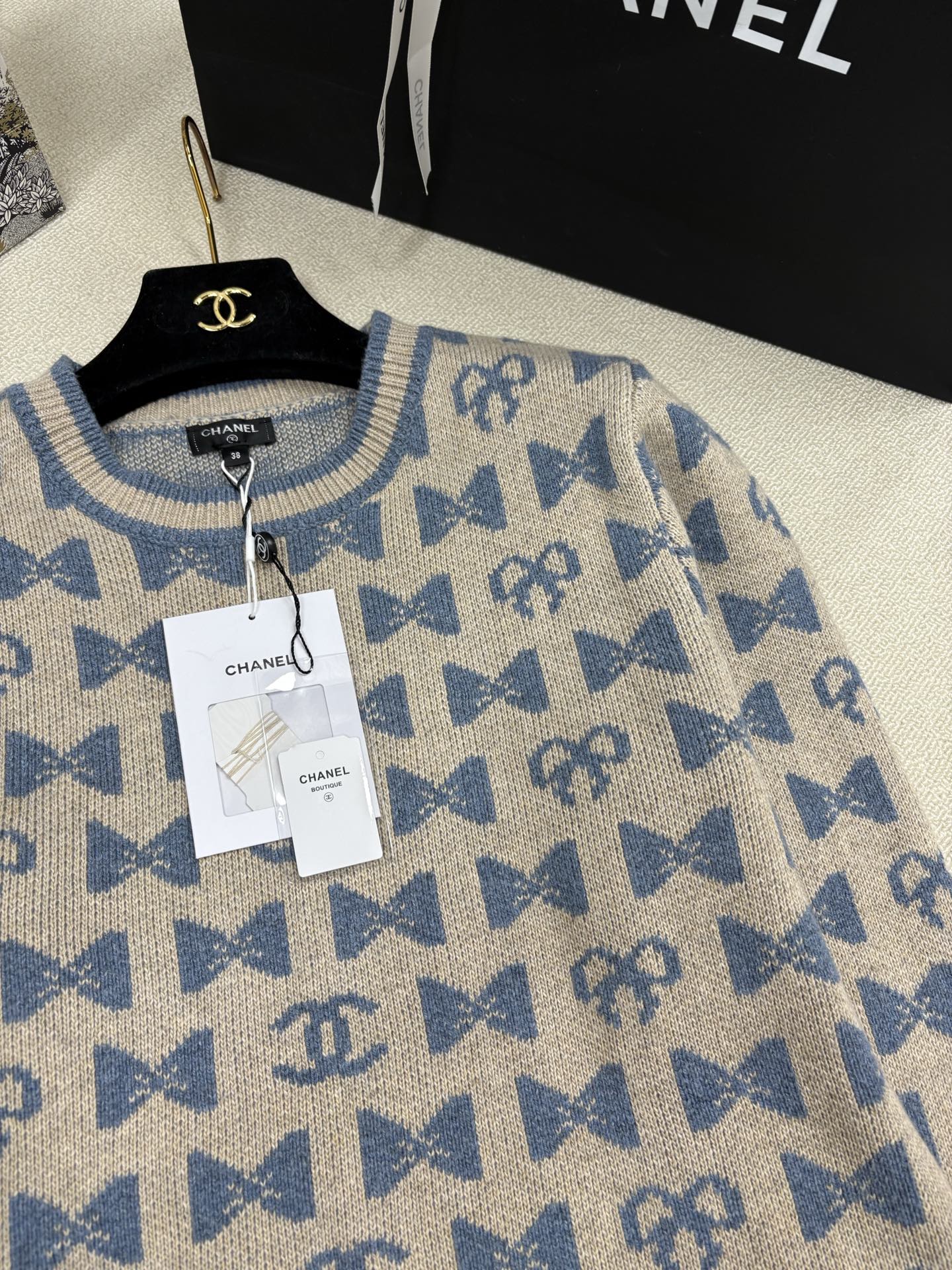这款衣服是AAAAA 1:1 质量 (非常棒). 使用了和原版一模一样的材料. 商标部分也保持了和香奈儿/Chanel一样. 图片拍摄是实物衣服拍摄, 您所收到的实物保证和我们图片一模一样.