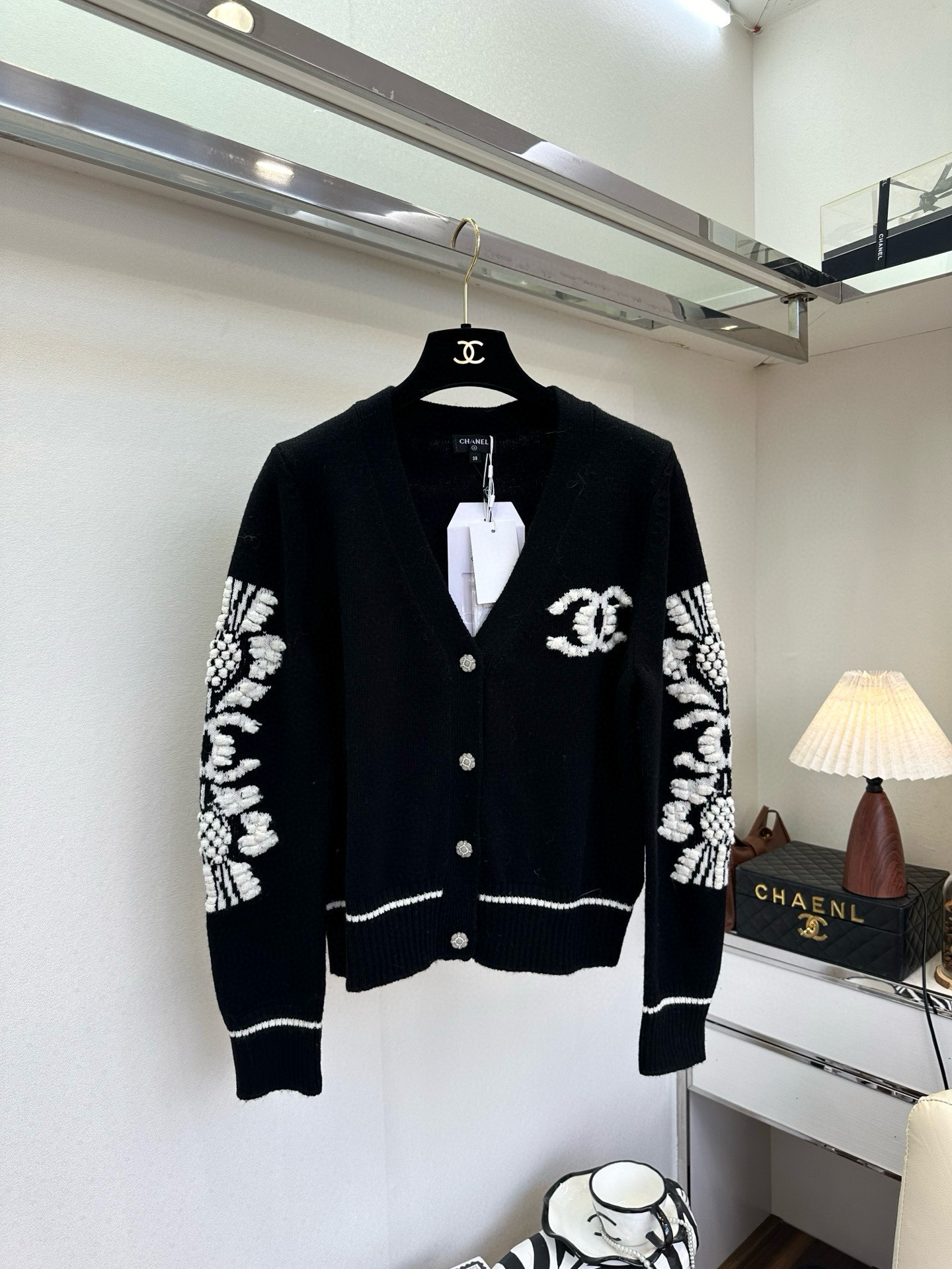 这款衣服是AAAAA 1:1 质量 (非常棒). 使用了和原版一模一样的材料. 商标部分也保持了和香奈儿/Chanel一样. 图片拍摄是实物衣服拍摄, 您所收到的实物保证和我们图片一模一样.