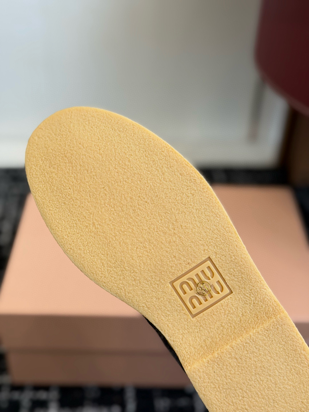 这款鞋子是AAAAA 1:1 质量 (非常棒). 使用了和原版一模一样的材料. 商标部分也保持了和缪缪/Miu Miu一样. 图片拍摄是实物鞋子拍摄, 您所收到的实物保证和我们图片一模一样.