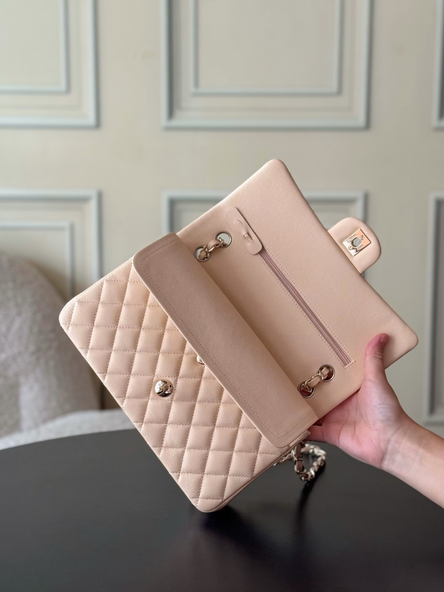 这款包包是AAAAA 1:1 质量 (非常棒). 使用了和原版一模一样的材料. 商标部分也保持了和香奈儿/Chanel一样. 图片拍摄是实物包包拍摄, 您所收到的实物保证和我们图片一模一样.