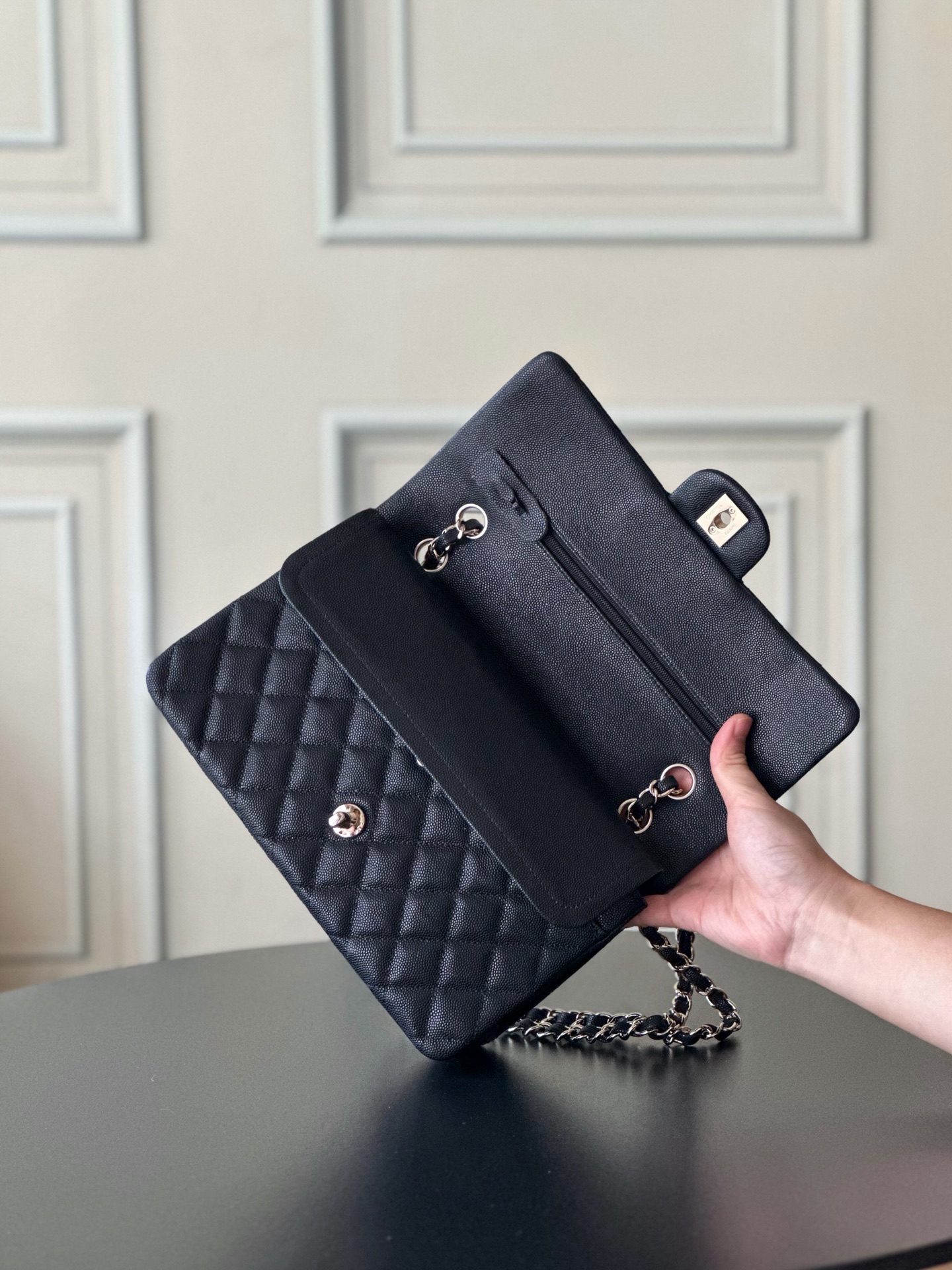 这款包包是AAAAA 1:1 质量 (非常棒). 使用了和原版一模一样的材料. 商标部分也保持了和香奈儿/Chanel一样. 图片拍摄是实物包包拍摄, 您所收到的实物保证和我们图片一模一样.