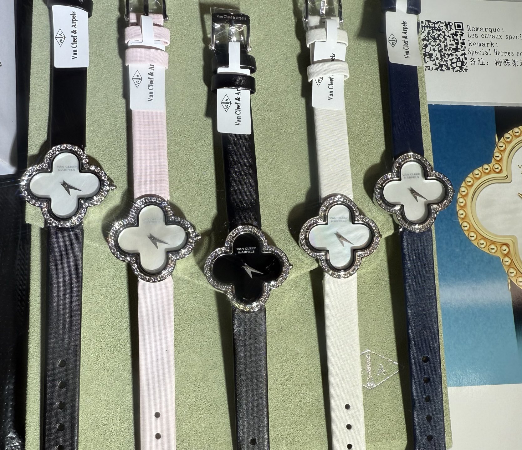 这款手表是AAAAA 1:1 质量 (非常棒). 使用了和原版一模一样的材料. 商标部分也保持了和梵克雅宝/Van Cleef & Arpels一样. 图片拍摄是实物手表拍摄, 您所收到的实物保证和我们图片一模一样.