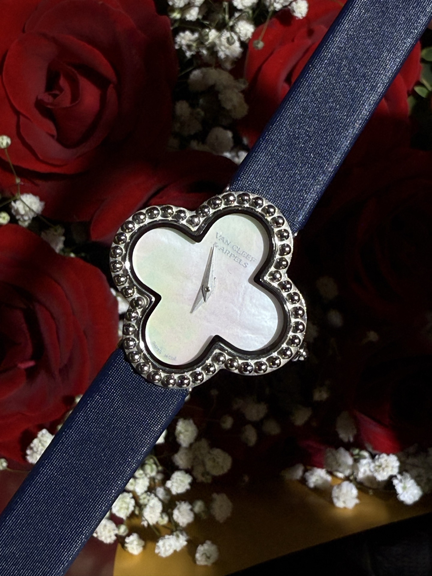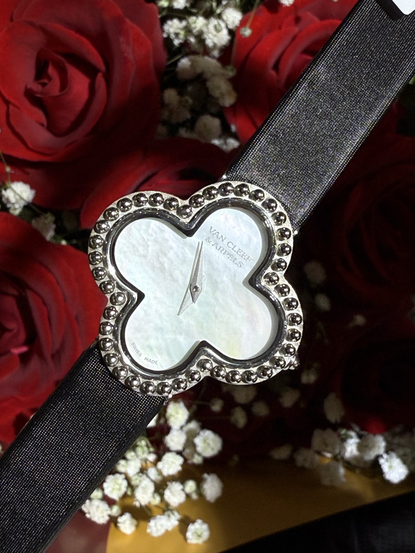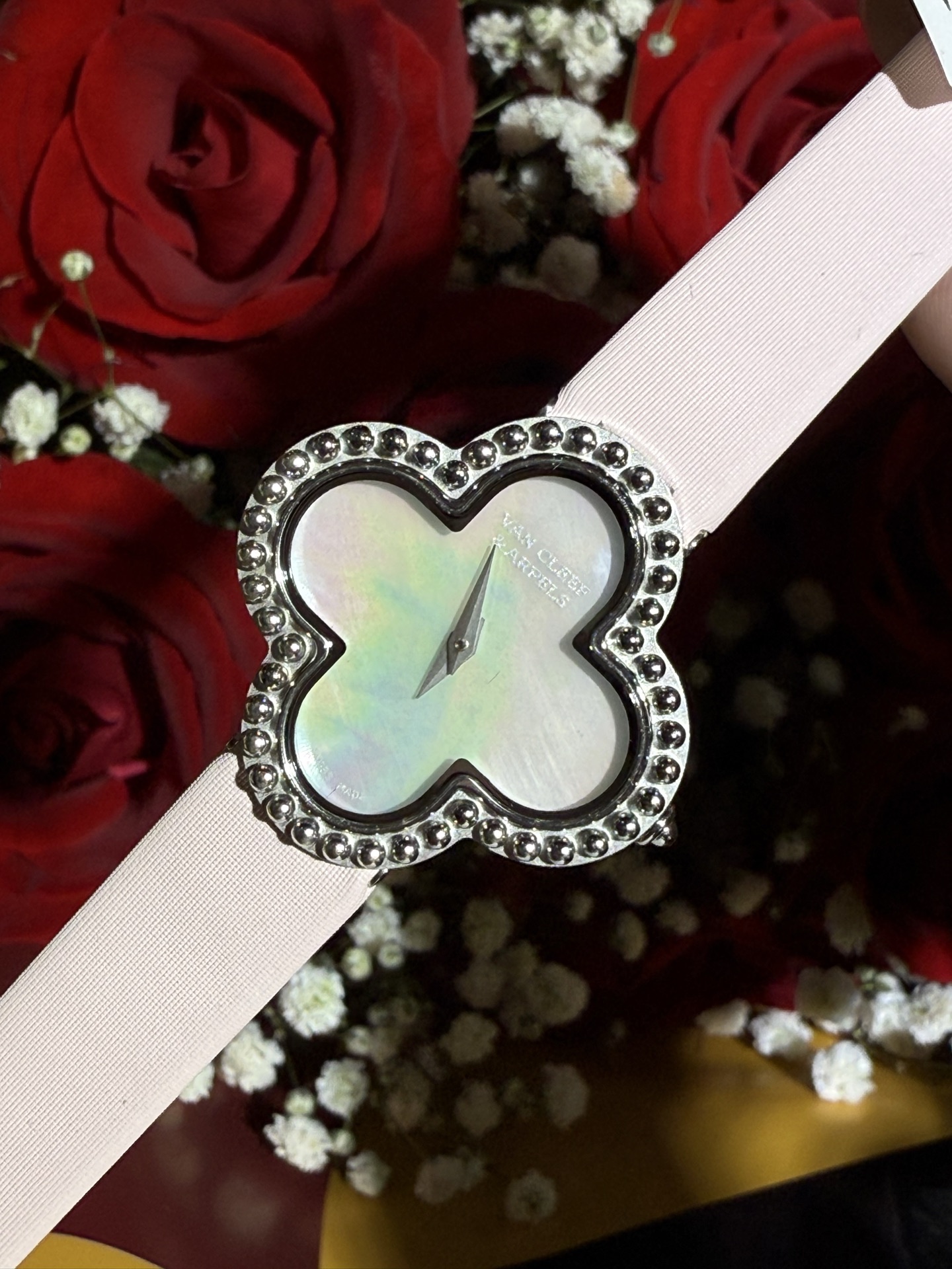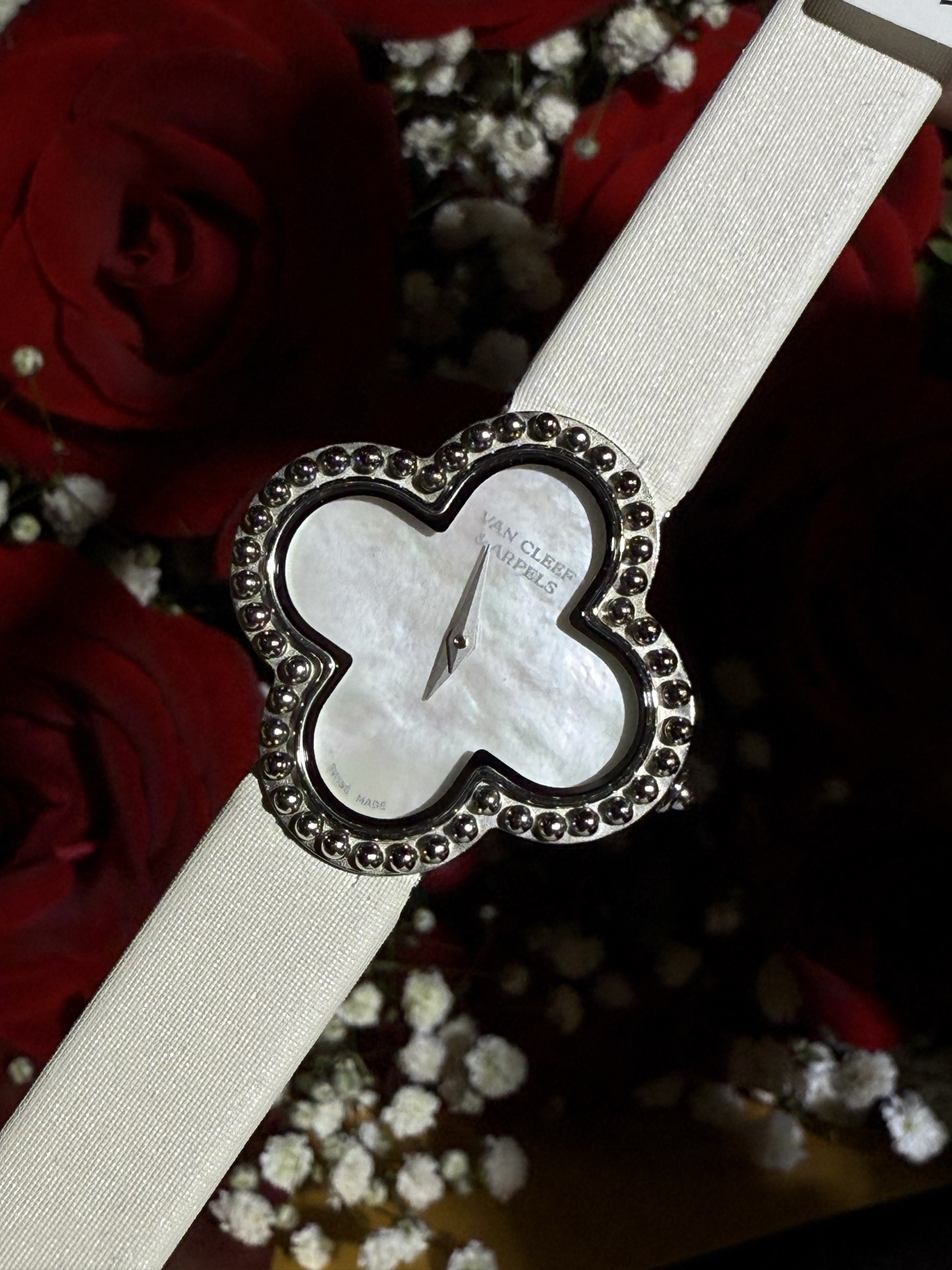 这款手表是AAAAA 1:1 质量 (非常棒). 使用了和原版一模一样的材料. 商标部分也保持了和梵克雅宝/Van Cleef & Arpels一样. 图片拍摄是实物手表拍摄, 您所收到的实物保证和我们图片一模一样.
