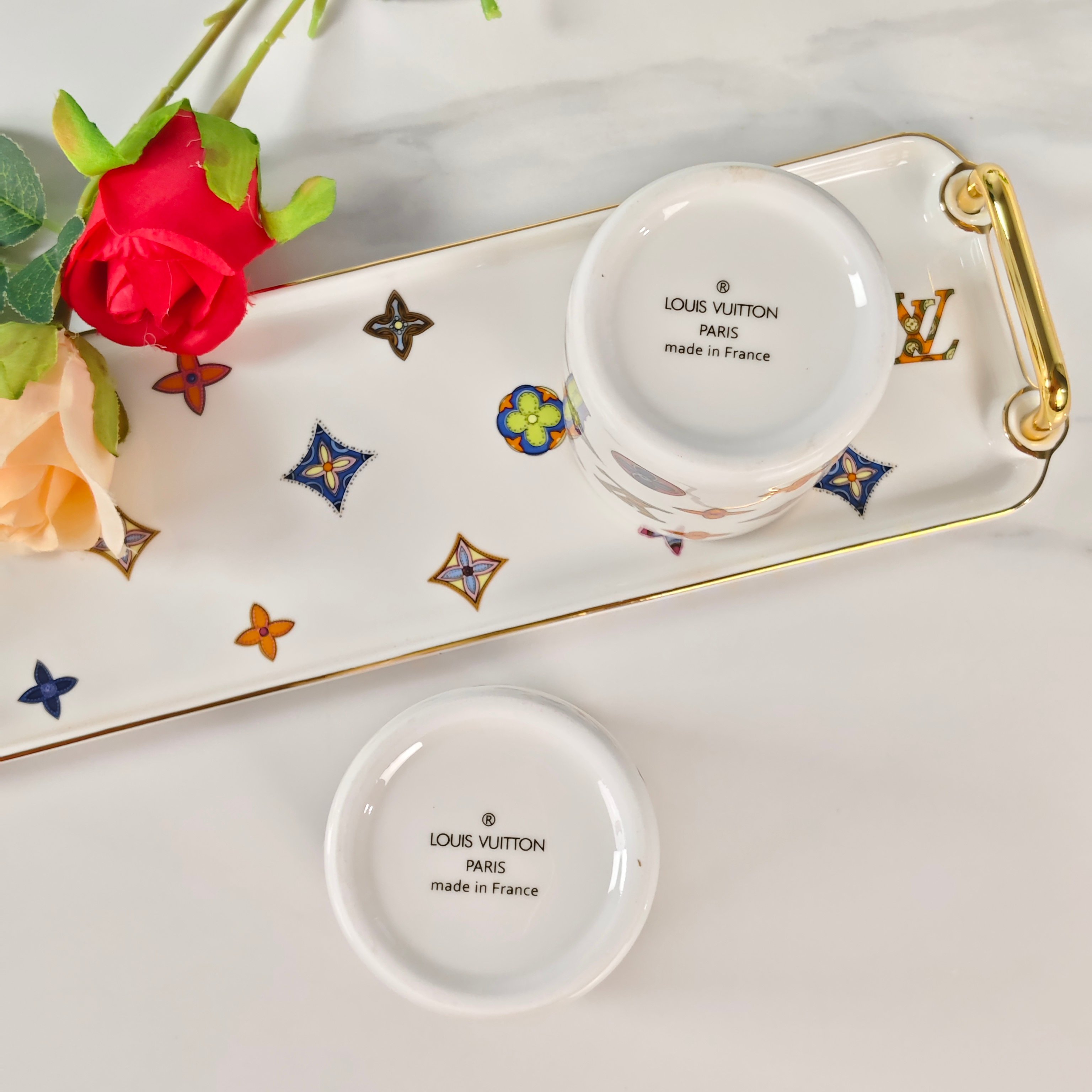 这款bone china tableware sets是AAAAA 1:1 质量 (非常棒). 使用了和原版一模一样的材料. 商标部分也保持了和路易威登/Louis Vuitton一样. 图片拍摄是实物bone china tableware sets拍摄, 您所收到的实物保证和我们图片一模一样.