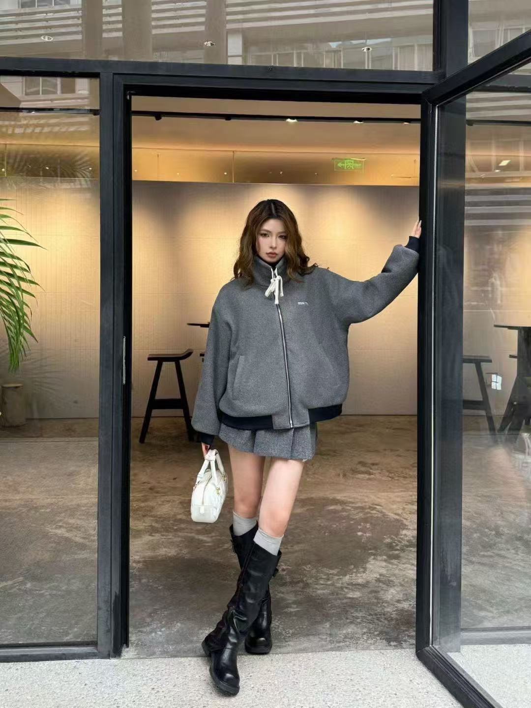 这款衣服是AAAAA 1:1 质量 (非常棒). 使用了和原版一模一样的材料. 商标部分也保持了和缪缪/Miu Miu一样. 图片拍摄是实物衣服拍摄, 您所收到的实物保证和我们图片一模一样.