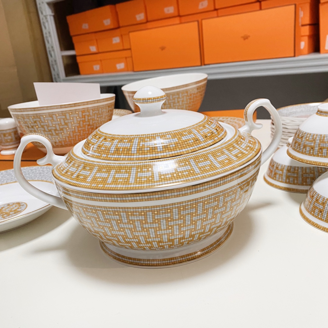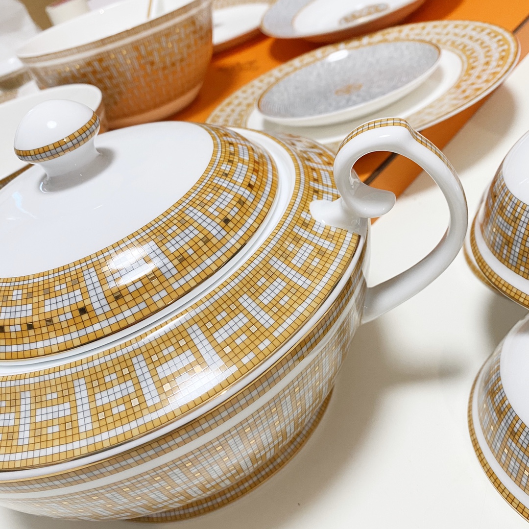 这款bone china tableware sets是AAAAA 1:1 质量 (非常棒). 使用了和原版一模一样的材料. 商标部分也保持了和一样. 图片拍摄是实物bone china tableware sets拍摄, 您所收到的实物保证和我们图片一模一样.