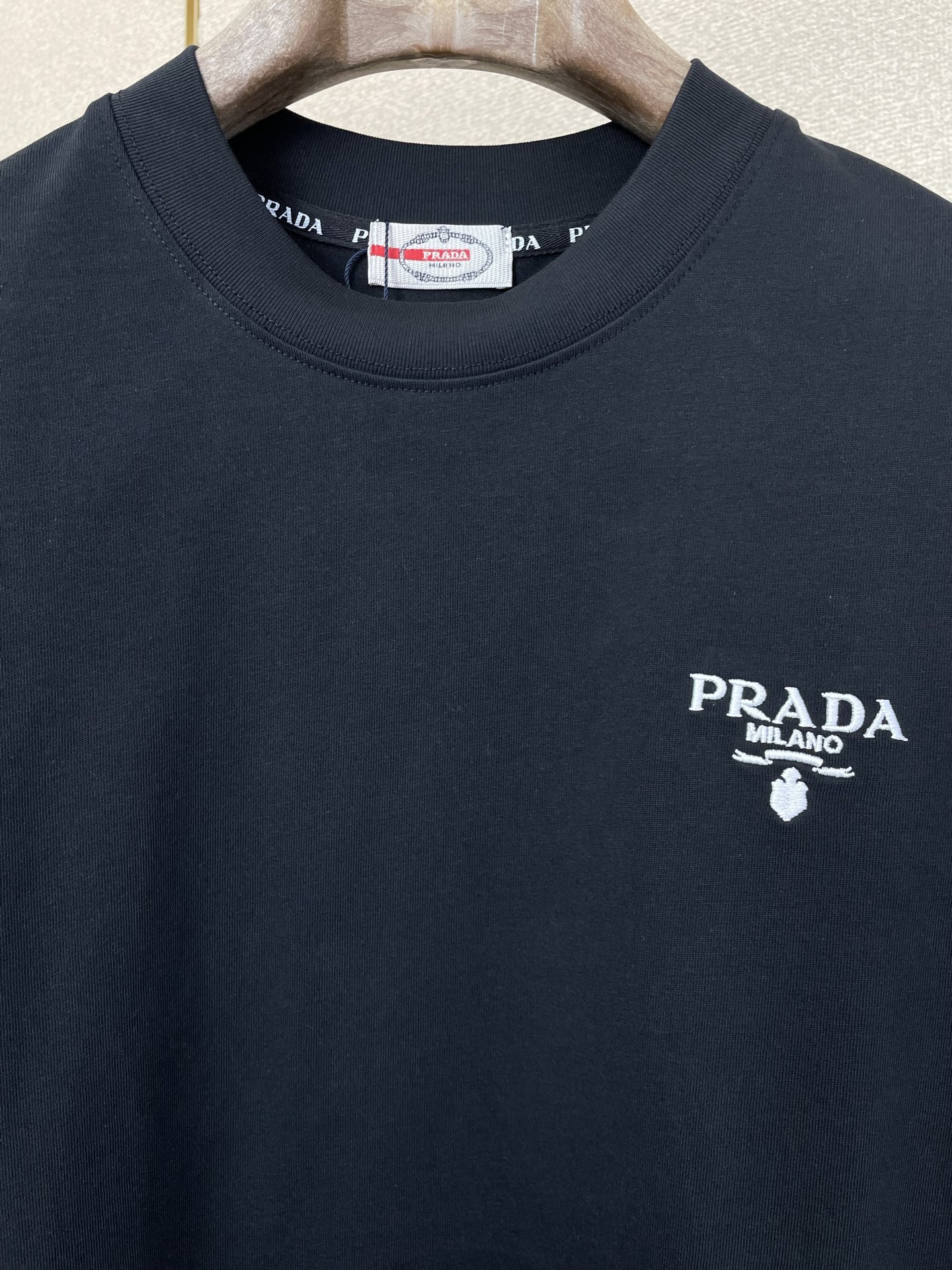 这款衣服是AAAAA 1:1 质量 (非常棒). 使用了和原版一模一样的材料. 商标部分也保持了和普拉达/Prada一样. 图片拍摄是实物衣服拍摄, 您所收到的实物保证和我们图片一模一样.