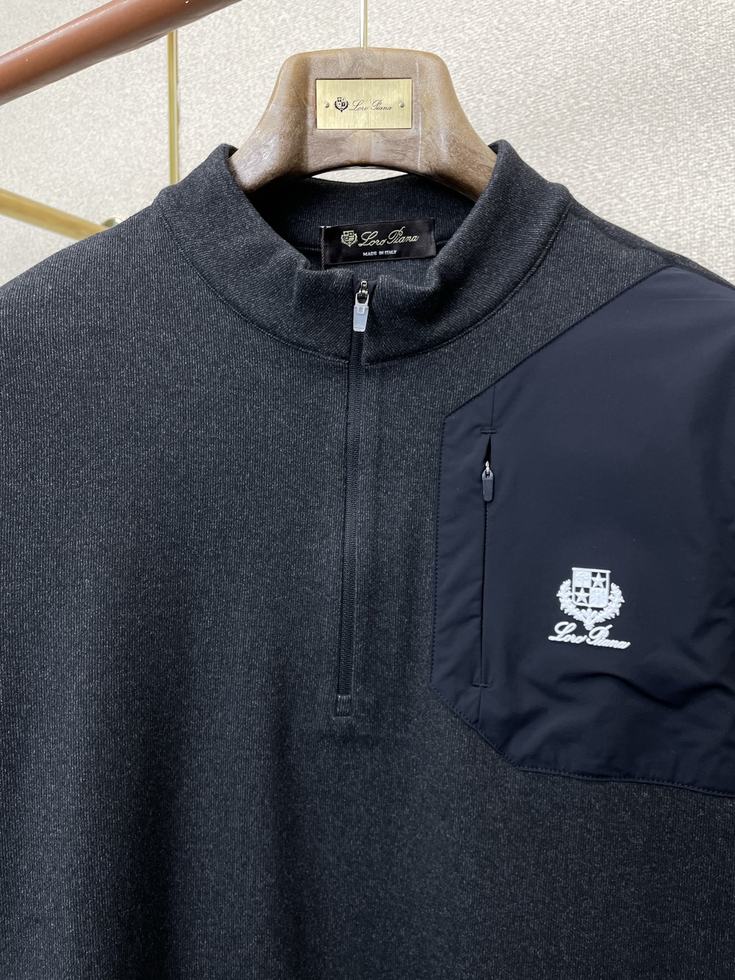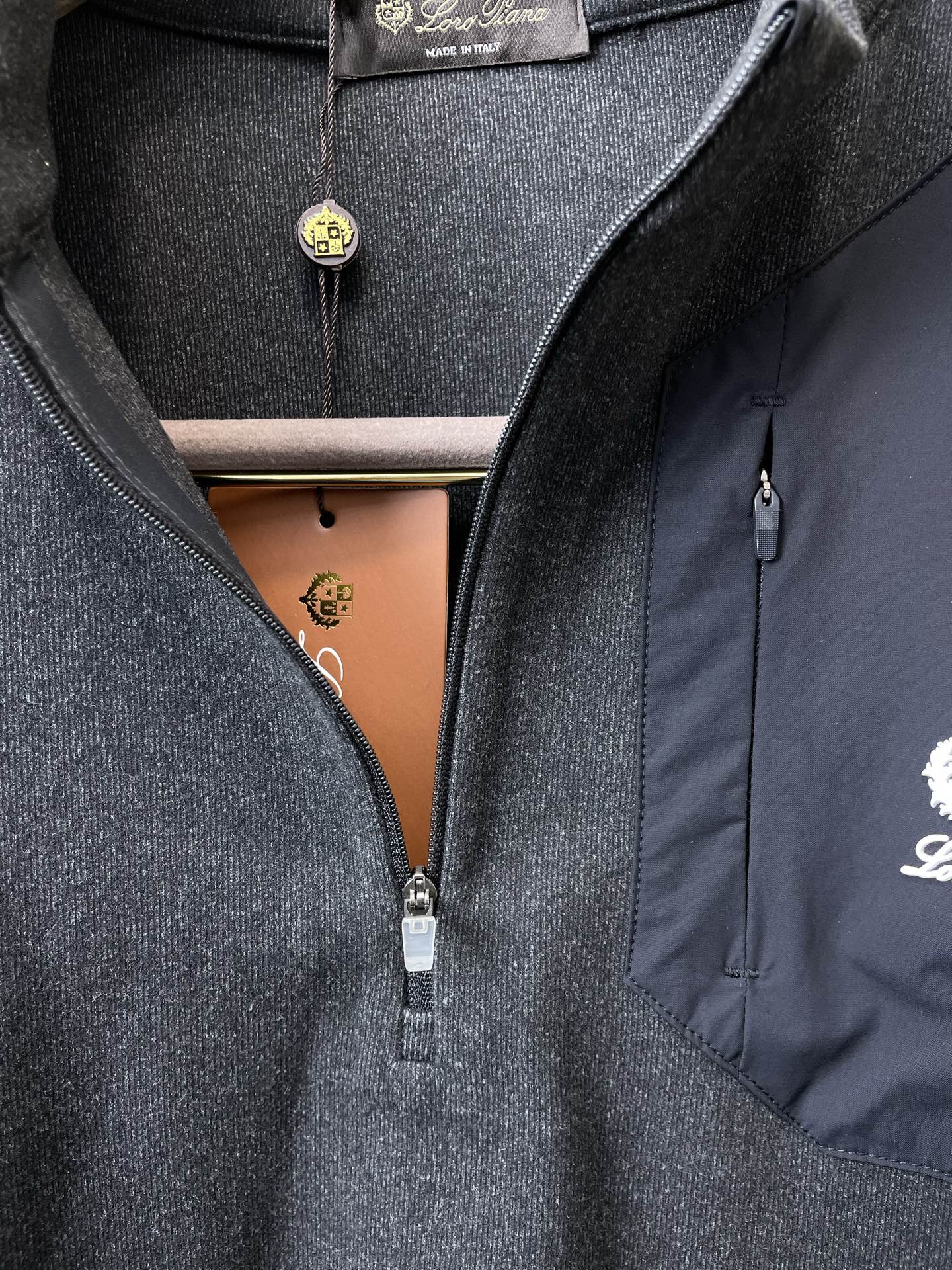 这款衣服是AAAAA 1:1 质量 (非常棒). 使用了和原版一模一样的材料. 商标部分也保持了和洛罗皮亚纳/Loro Piana一样. 图片拍摄是实物衣服拍摄, 您所收到的实物保证和我们图片一模一样.