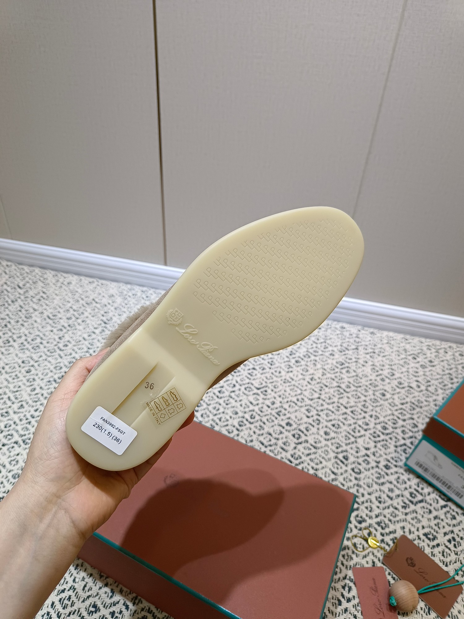 这款鞋子是AAAAA 1:1 质量 (非常棒). 使用了和原版一模一样的材料. 商标部分也保持了和洛罗皮亚纳/Loro Piana一样. 图片拍摄是实物鞋子拍摄, 您所收到的实物保证和我们图片一模一样.