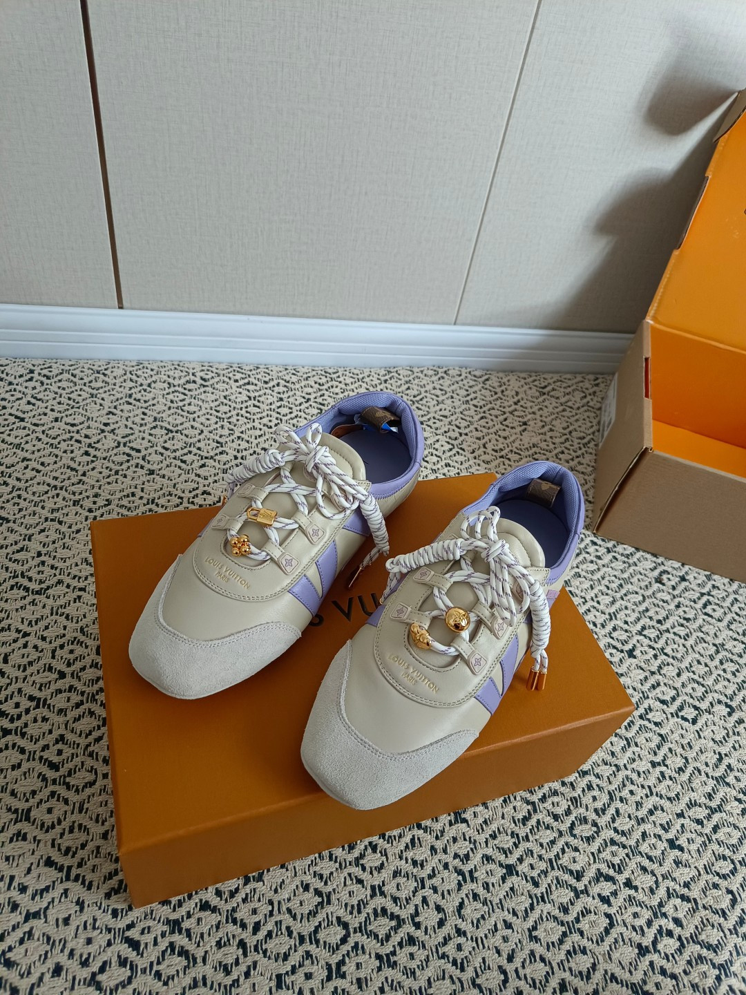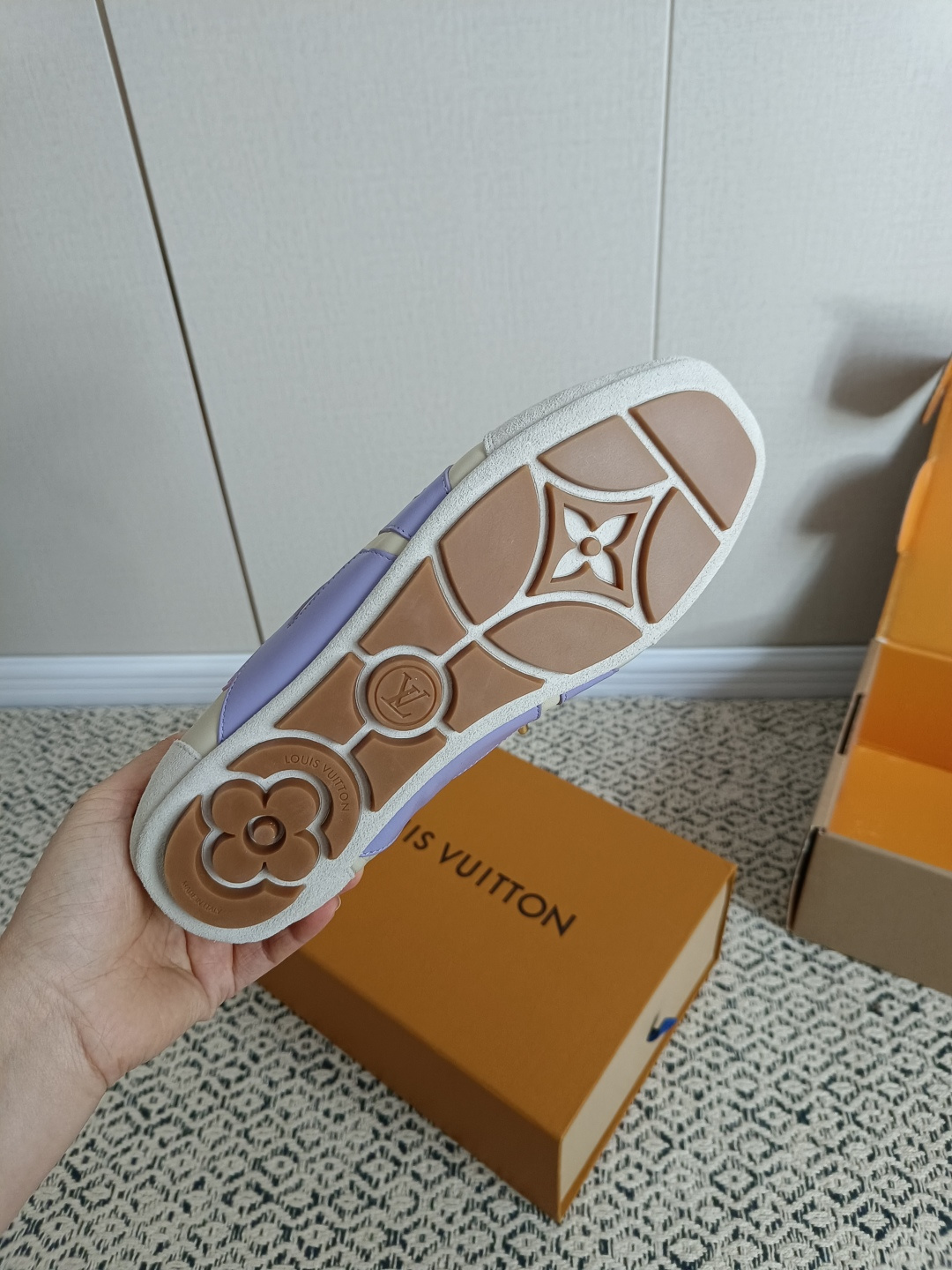 这款鞋子是AAAAA 1:1 质量 (非常棒). 使用了和原版一模一样的材料. 商标部分也保持了和路易威登/Louis Vuitton一样. 图片拍摄是实物鞋子拍摄, 您所收到的实物保证和我们图片一模一样.