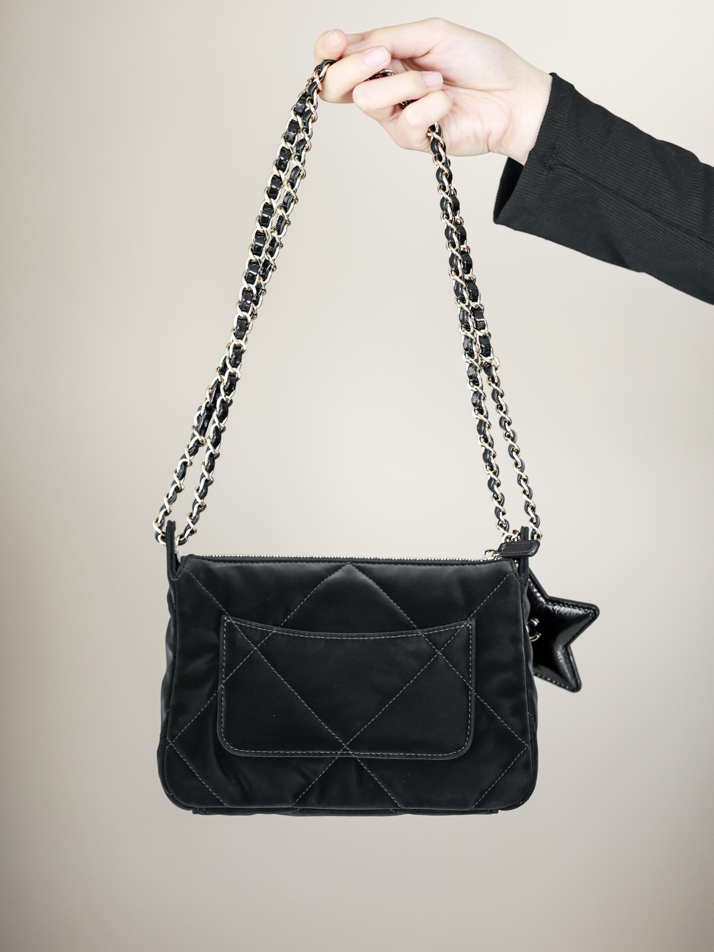 这款包包是AAAAA 1:1 质量 (非常棒). 使用了和原版一模一样的材料. 商标部分也保持了和香奈儿/Chanel一样. 图片拍摄是实物包包拍摄, 您所收到的实物保证和我们图片一模一样.