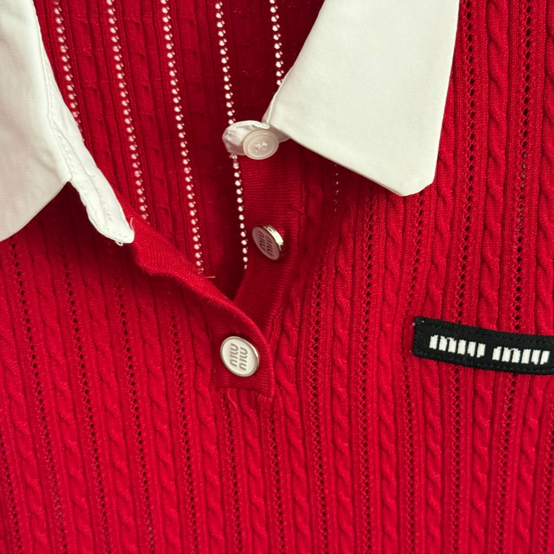这款衣服是AAAAA 1:1 质量 (非常棒). 使用了和原版一模一样的材料. 商标部分也保持了和缪缪/Miu Miu一样. 图片拍摄是实物衣服拍摄, 您所收到的实物保证和我们图片一模一样.