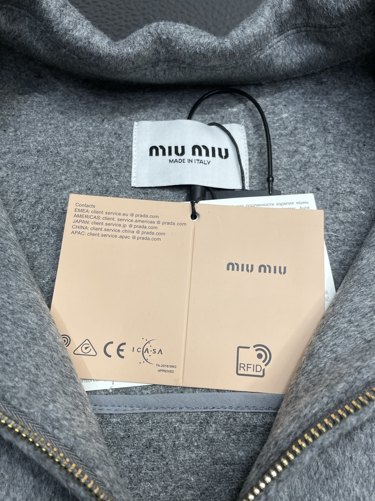 这款衣服是AAAAA 1:1 质量 (非常棒). 使用了和原版一模一样的材料. 商标部分也保持了和缪缪/Miu Miu一样. 图片拍摄是实物衣服拍摄, 您所收到的实物保证和我们图片一模一样.