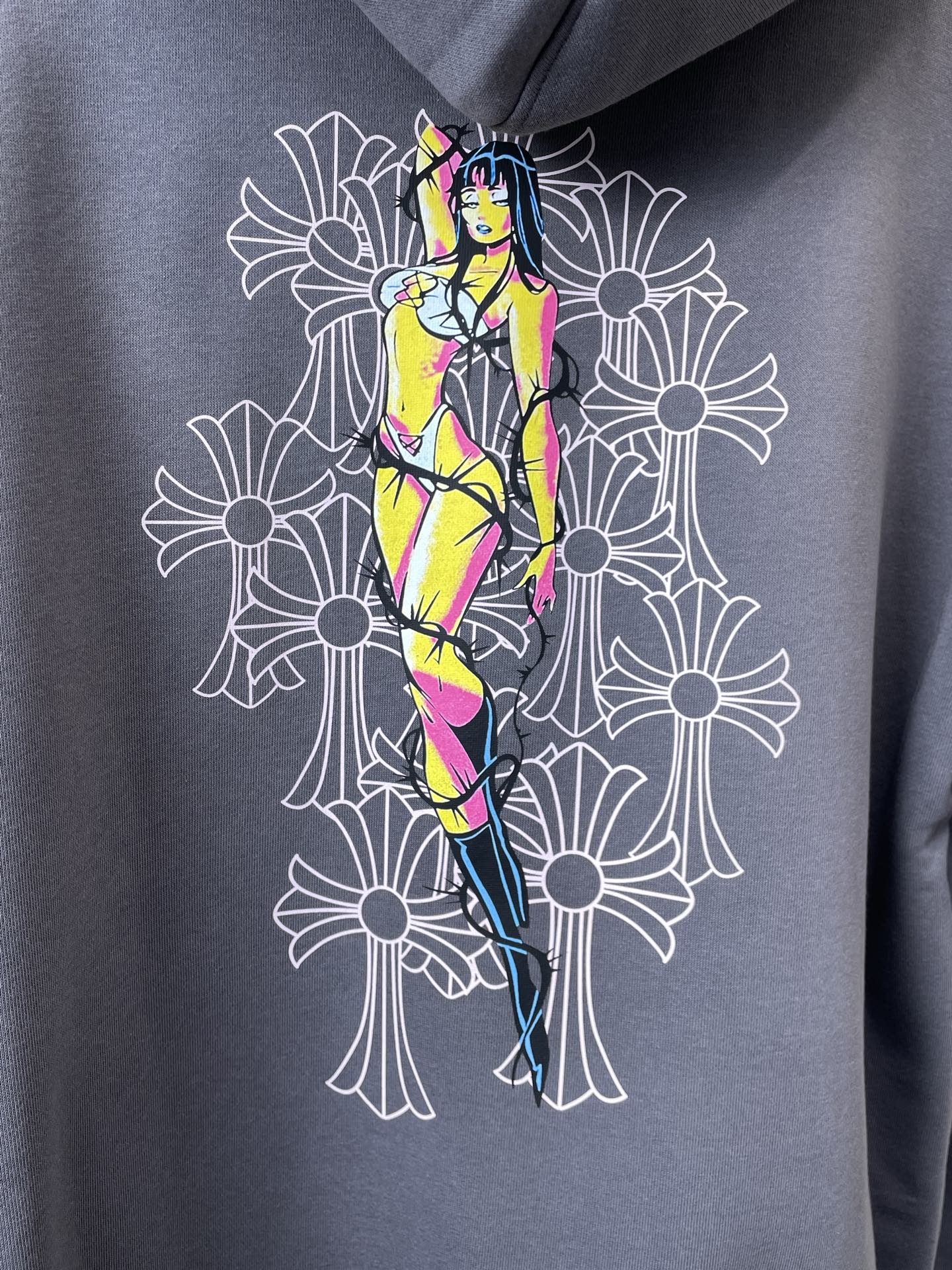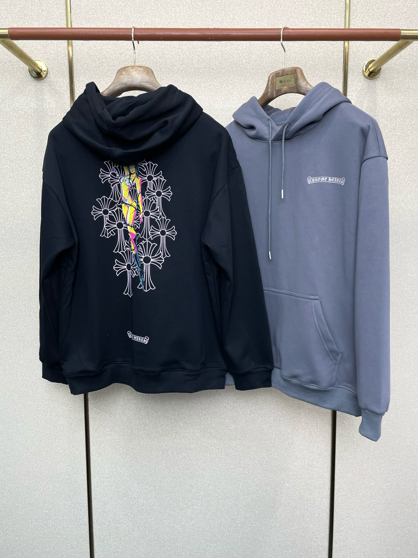 这款衣服是AAAAA 1:1 质量 (非常棒). 使用了和原版一模一样的材料. 商标部分也保持了和克罗心/Chrome Hearts一样. 图片拍摄是实物衣服拍摄, 您所收到的实物保证和我们图片一模一样.