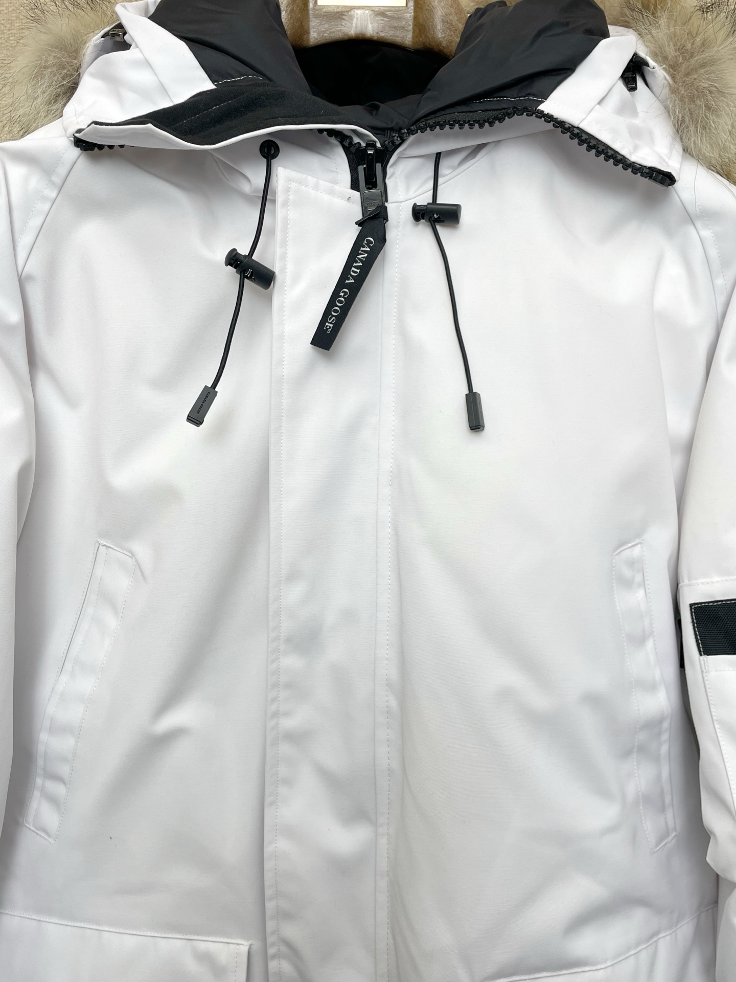 这款衣服是AAAAA 1:1 质量 (非常棒). 使用了和原版一模一样的材料. 商标部分也保持了和Canada Goose一样. 图片拍摄是实物衣服拍摄, 您所收到的实物保证和我们图片一模一样.