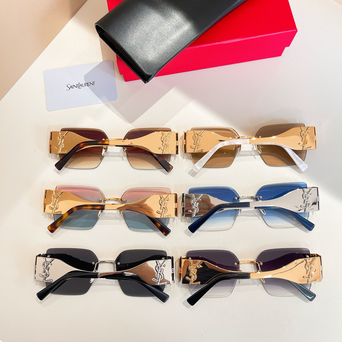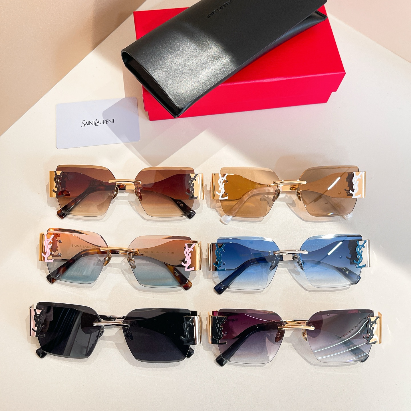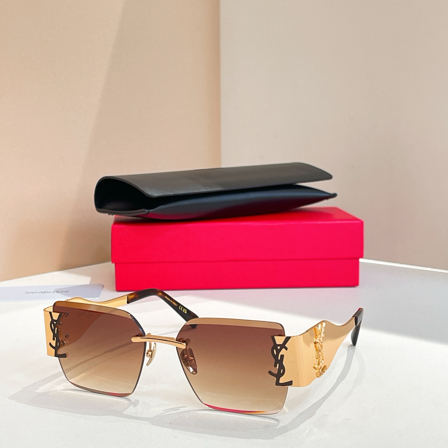 这款太阳眼镜是AAAAA 1:1 质量 (非常棒). 使用了和原版一模一样的材料. 商标部分也保持了和圣罗兰/Saint Laurent一样. 图片拍摄是实物太阳眼镜拍摄, 您所收到的实物保证和我们图片一模一样.