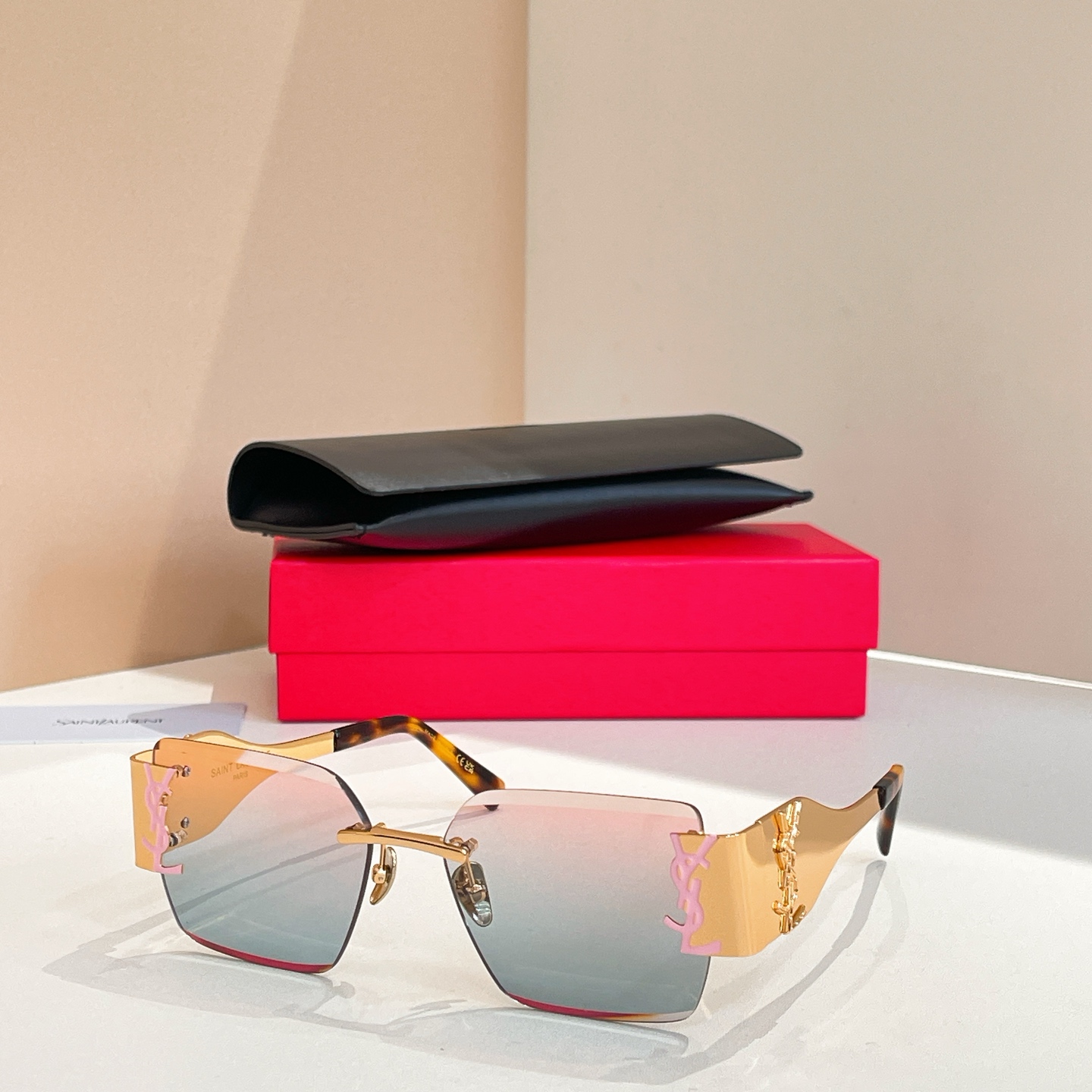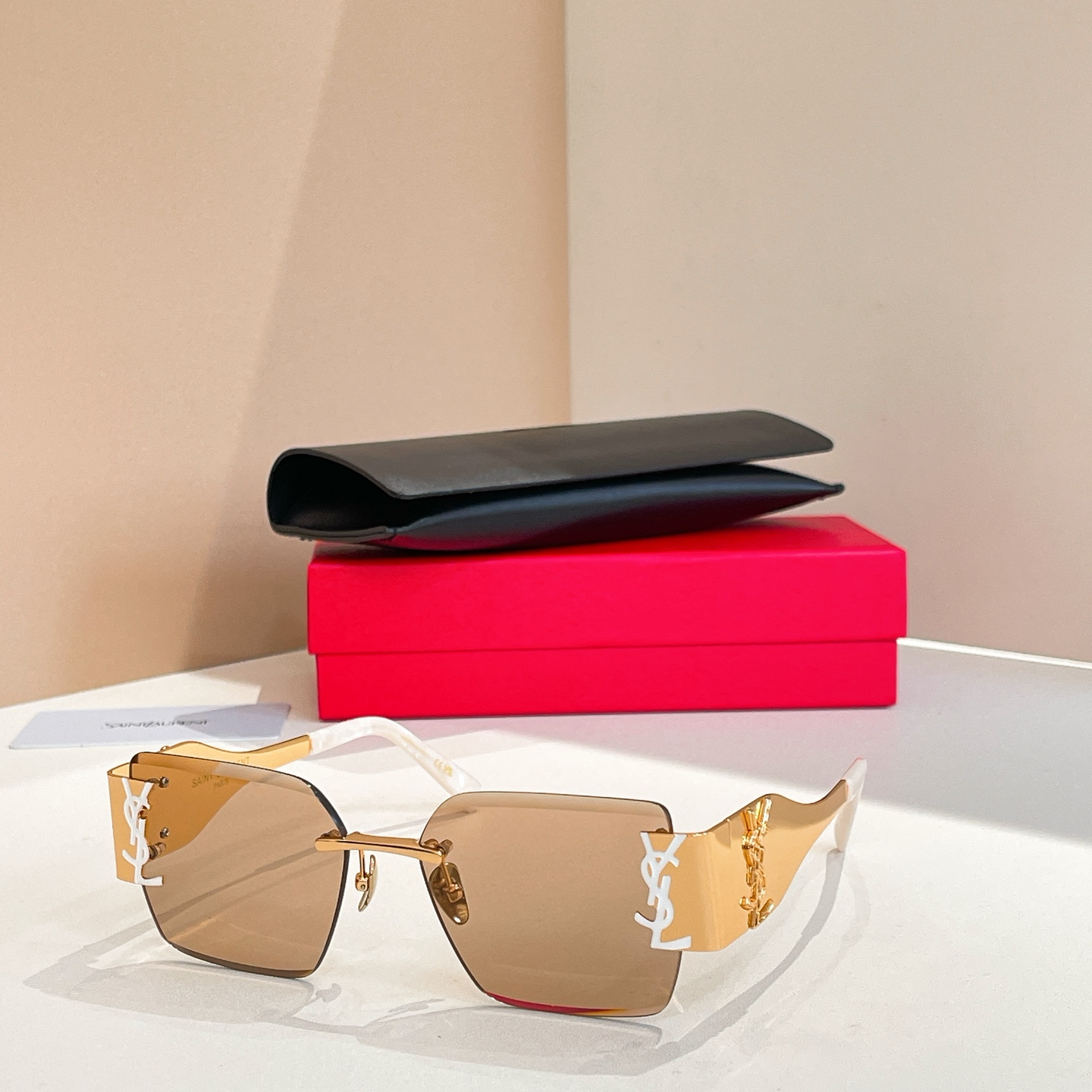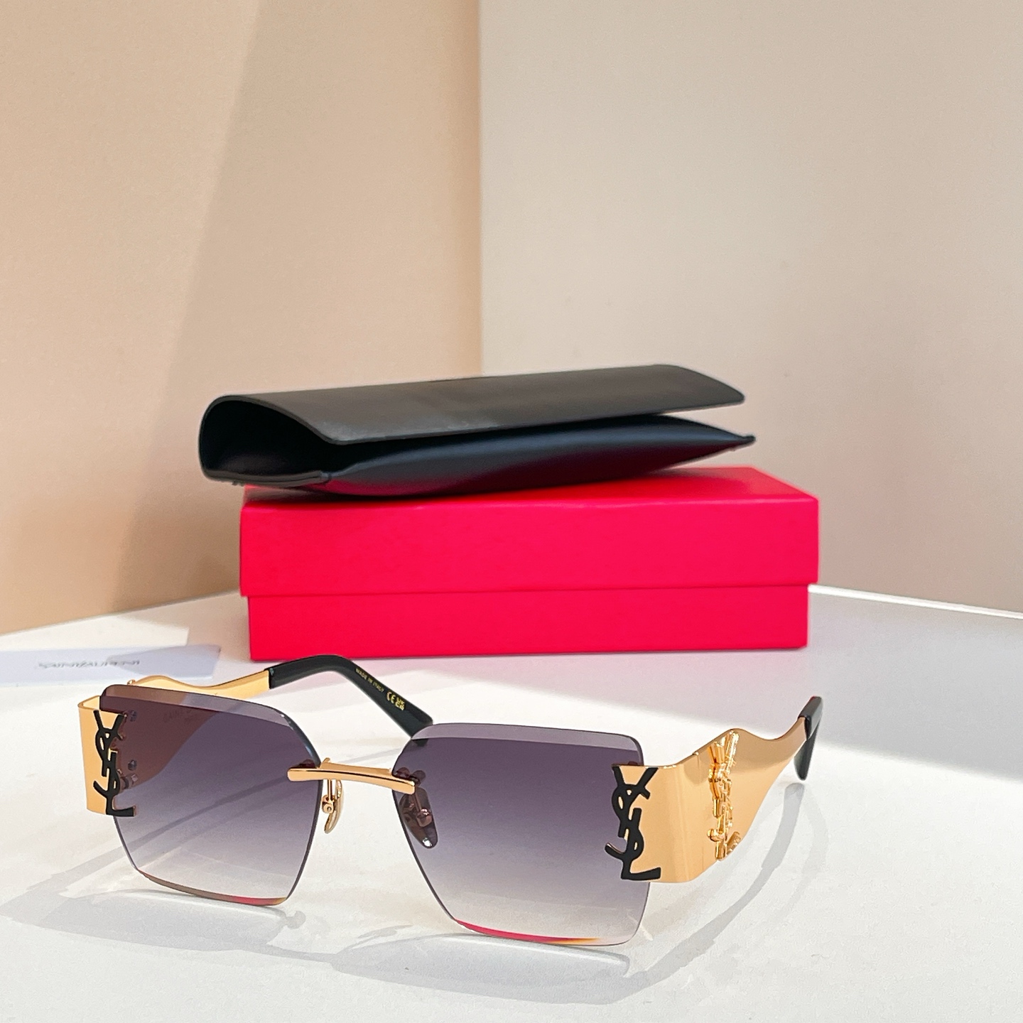 这款太阳眼镜是AAAAA 1:1 质量 (非常棒). 使用了和原版一模一样的材料. 商标部分也保持了和圣罗兰/Saint Laurent一样. 图片拍摄是实物太阳眼镜拍摄, 您所收到的实物保证和我们图片一模一样.