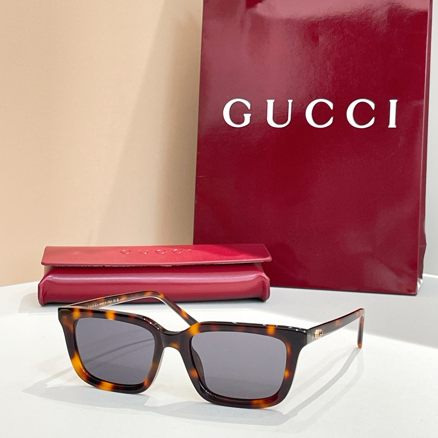 这款太阳眼镜是AAAAA 1:1 质量 (非常棒). 使用了和原版一模一样的材料. 商标部分也保持了和古奇/Gucci一样. 图片拍摄是实物太阳眼镜拍摄, 您所收到的实物保证和我们图片一模一样.