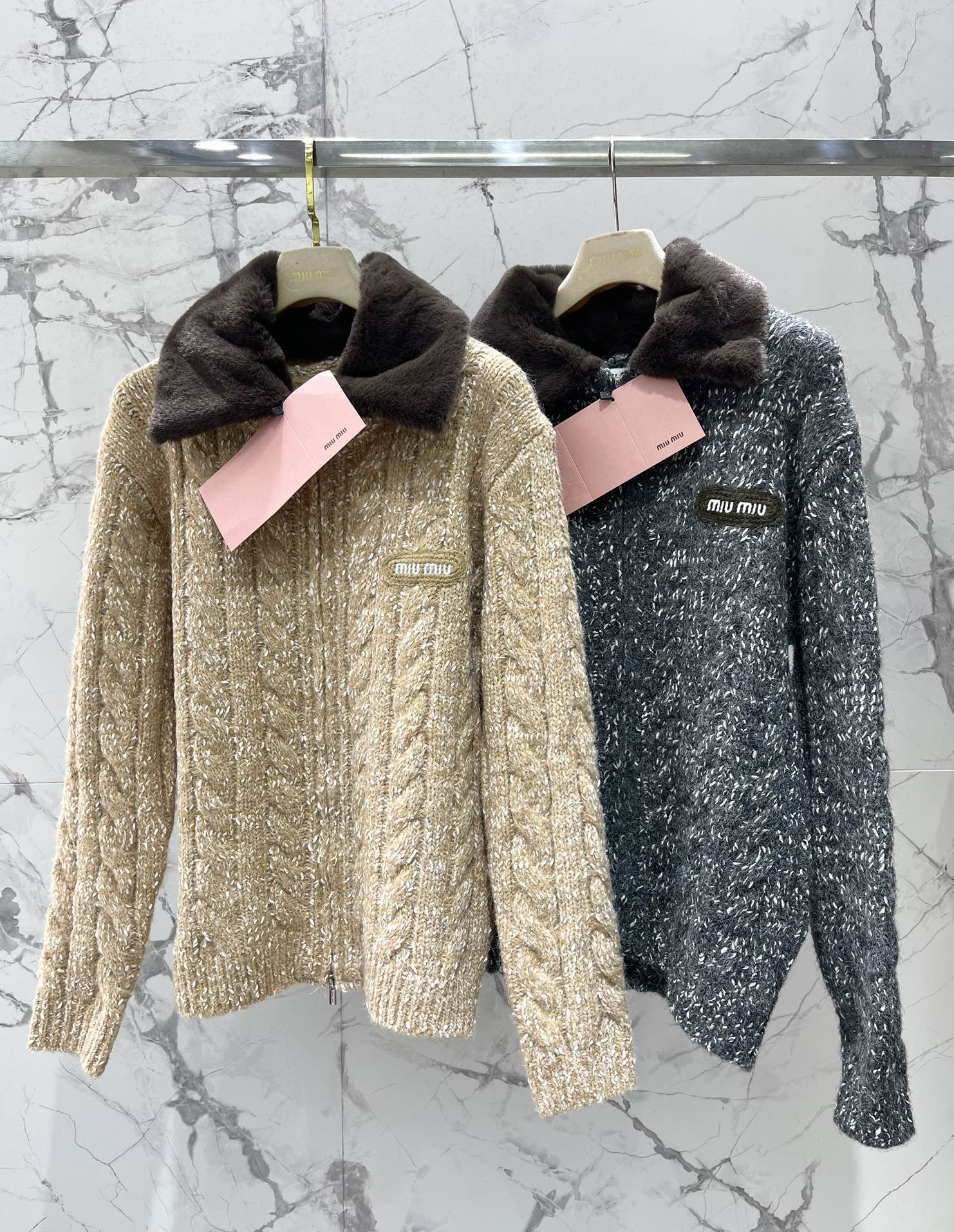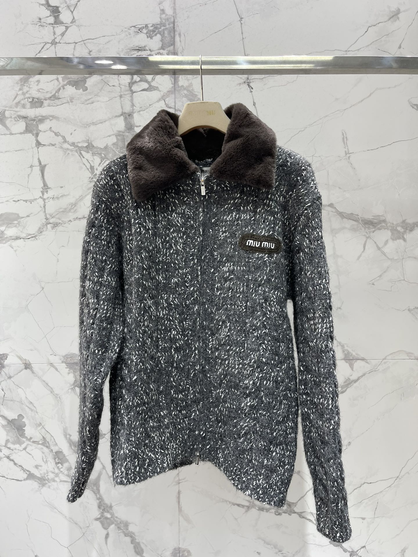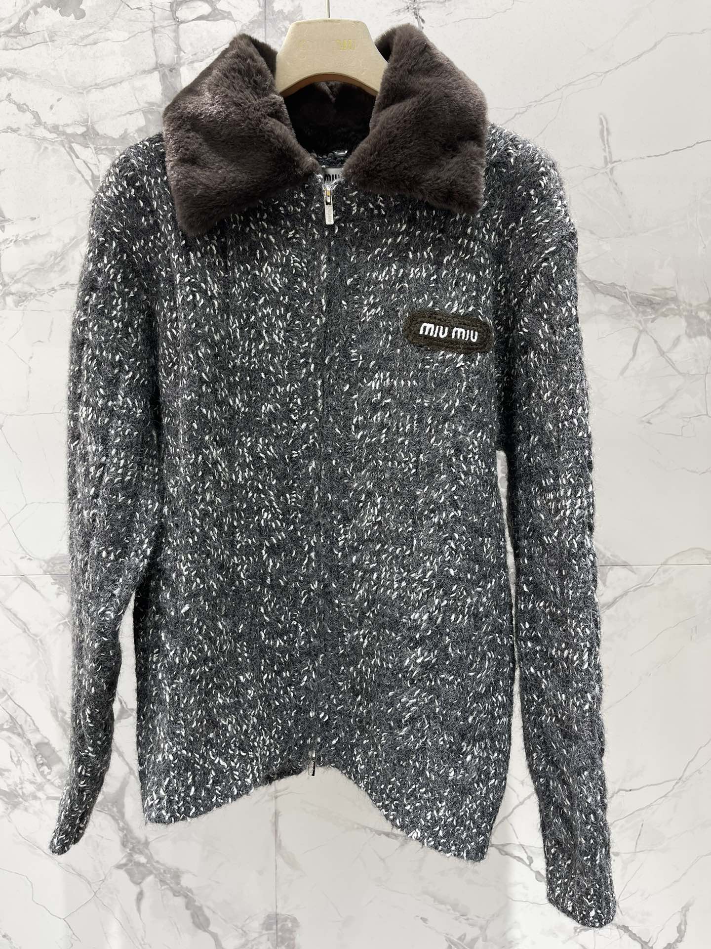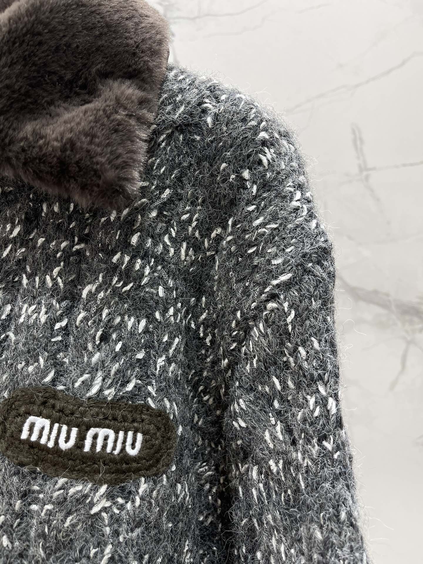 这款衣服是AAAAA 1:1 质量 (非常棒). 使用了和原版一模一样的材料. 商标部分也保持了和缪缪/Miu Miu一样. 图片拍摄是实物衣服拍摄, 您所收到的实物保证和我们图片一模一样.