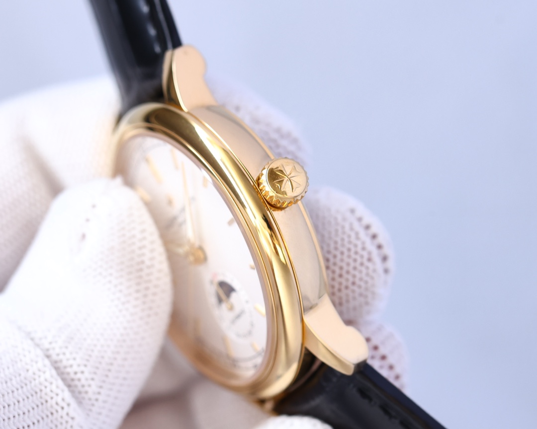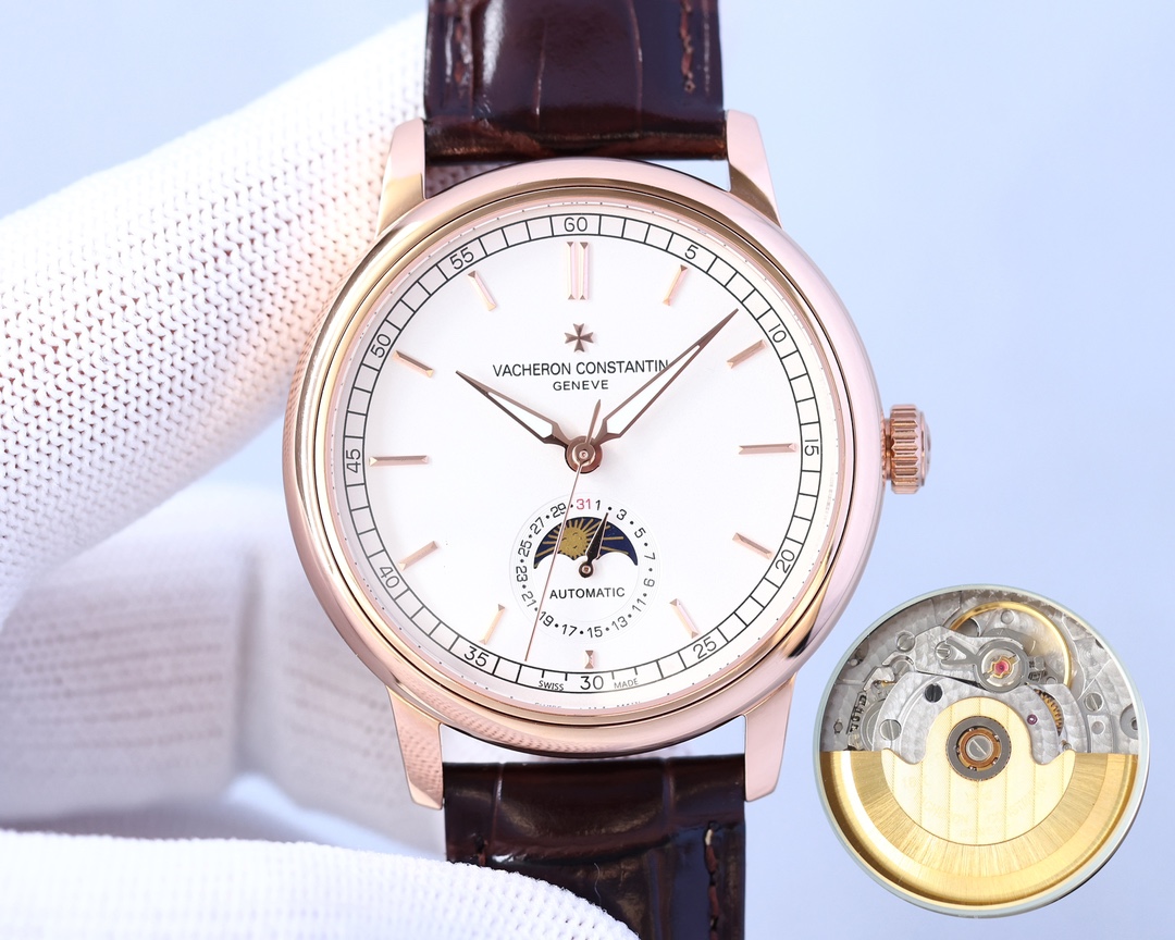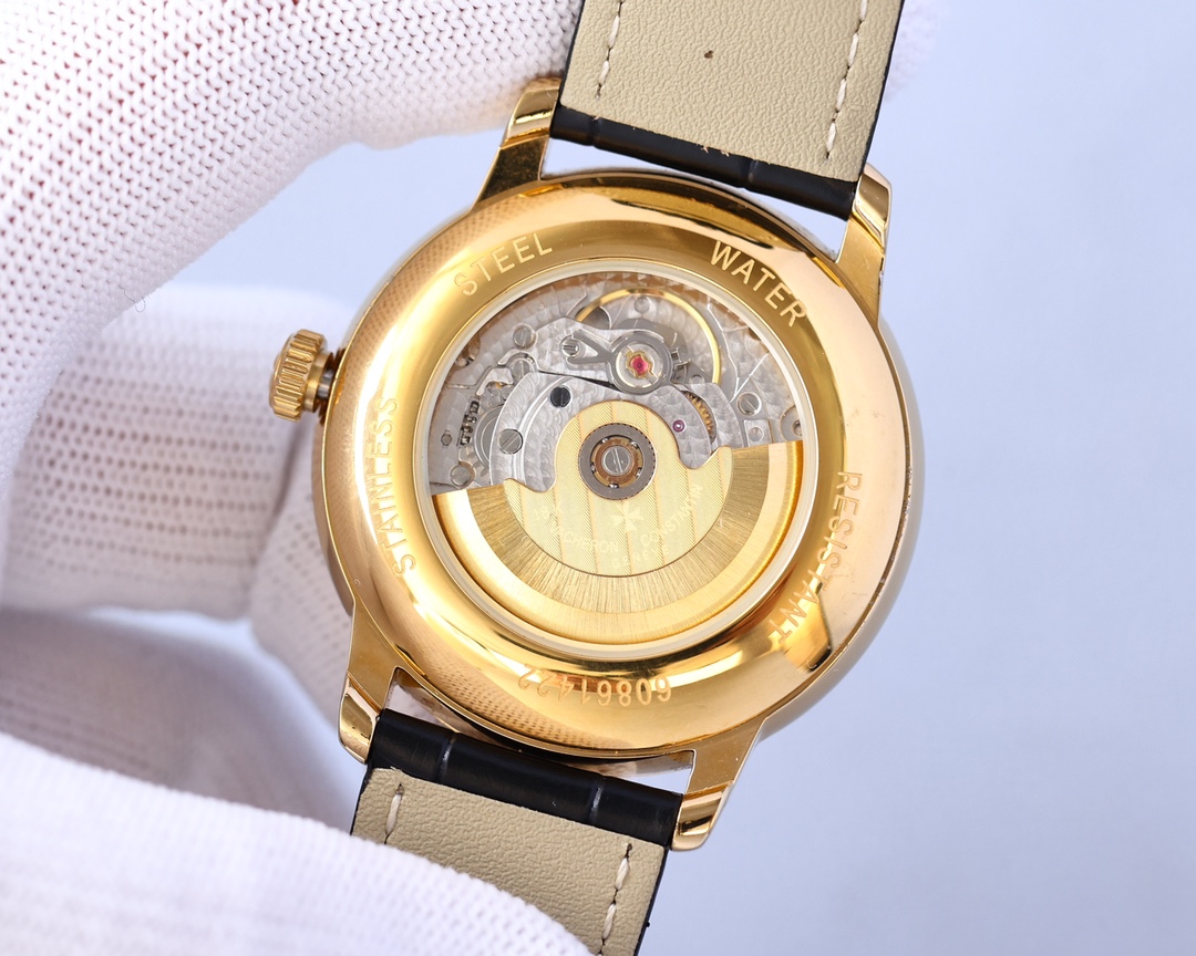 这款手表是AAAAA 1:1 质量 (非常棒). 使用了和原版一模一样的材料. 商标部分也保持了和江诗丹顿/Vacheron Constantin一样. 图片拍摄是实物手表拍摄, 您所收到的实物保证和我们图片一模一样.