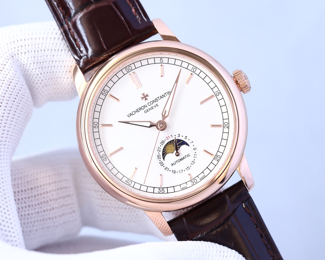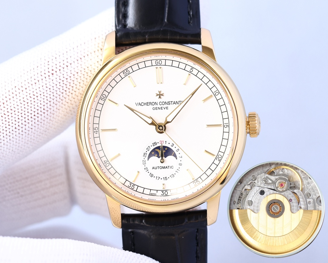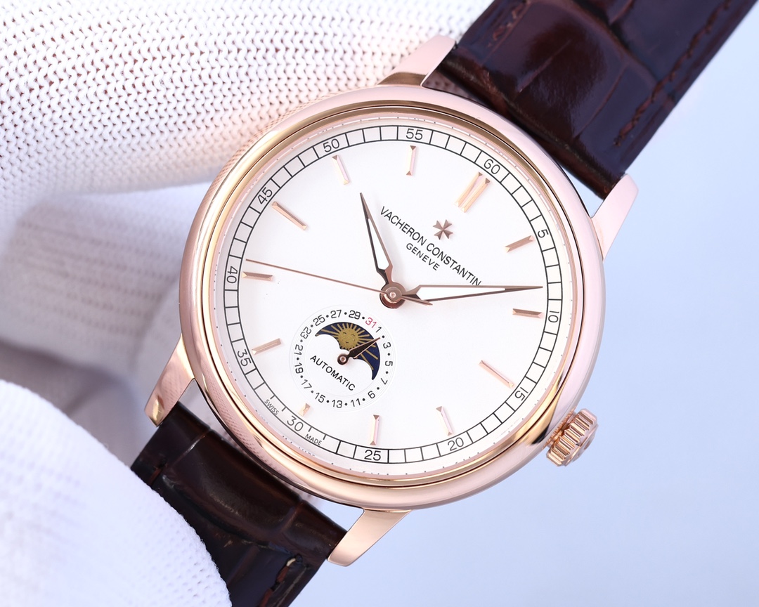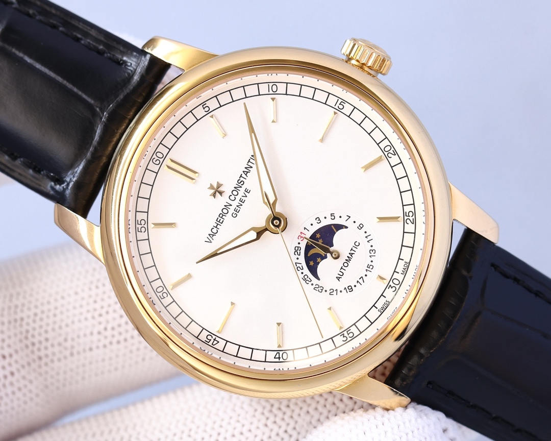 这款手表是AAAAA 1:1 质量 (非常棒). 使用了和原版一模一样的材料. 商标部分也保持了和江诗丹顿/Vacheron Constantin一样. 图片拍摄是实物手表拍摄, 您所收到的实物保证和我们图片一模一样.