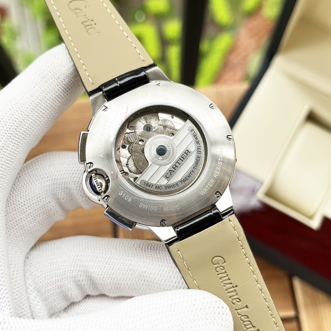 这款手表是AAAAA 1:1 质量 (非常棒). 使用了和原版一模一样的材料. 商标部分也保持了和卡地亚/Cartier一样. 图片拍摄是实物手表拍摄, 您所收到的实物保证和我们图片一模一样.