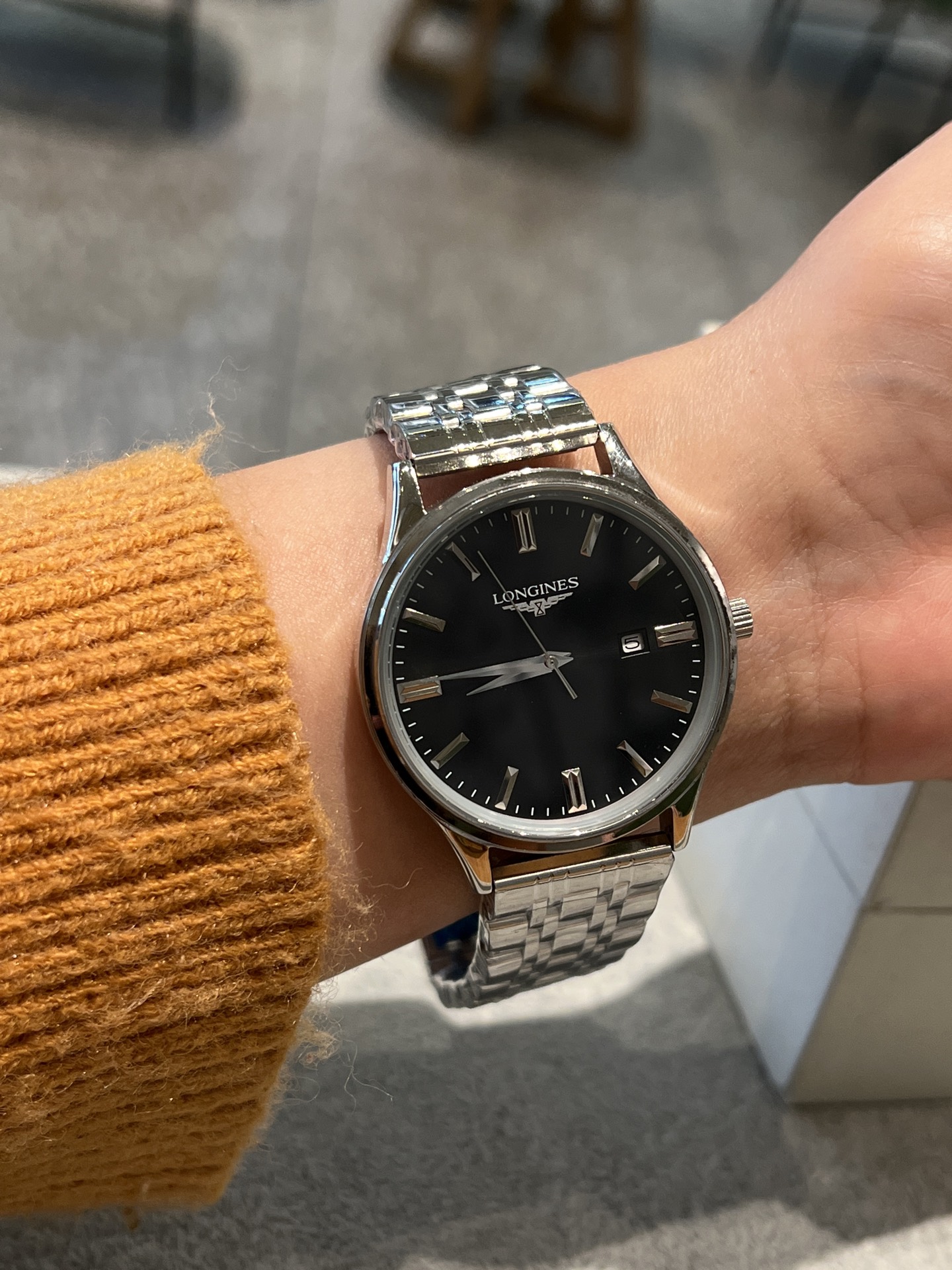 这款手表是AAAAA 1:1 质量 (非常棒). 使用了和原版一模一样的材料. 商标部分也保持了和浪琴/Longines一样. 图片拍摄是实物手表拍摄, 您所收到的实物保证和我们图片一模一样.