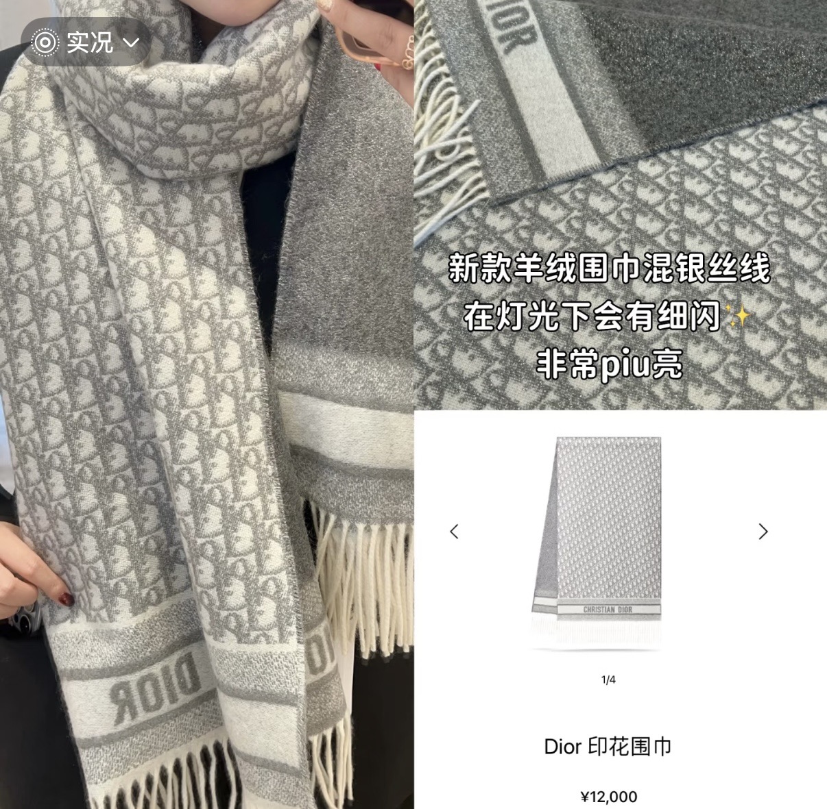 这款围巾是AAAAA 1:1 质量 (非常棒). 使用了和原版一模一样的材料. 商标部分也保持了和迪奥/Dior一样. 图片拍摄是实物围巾拍摄, 您所收到的实物保证和我们图片一模一样.
