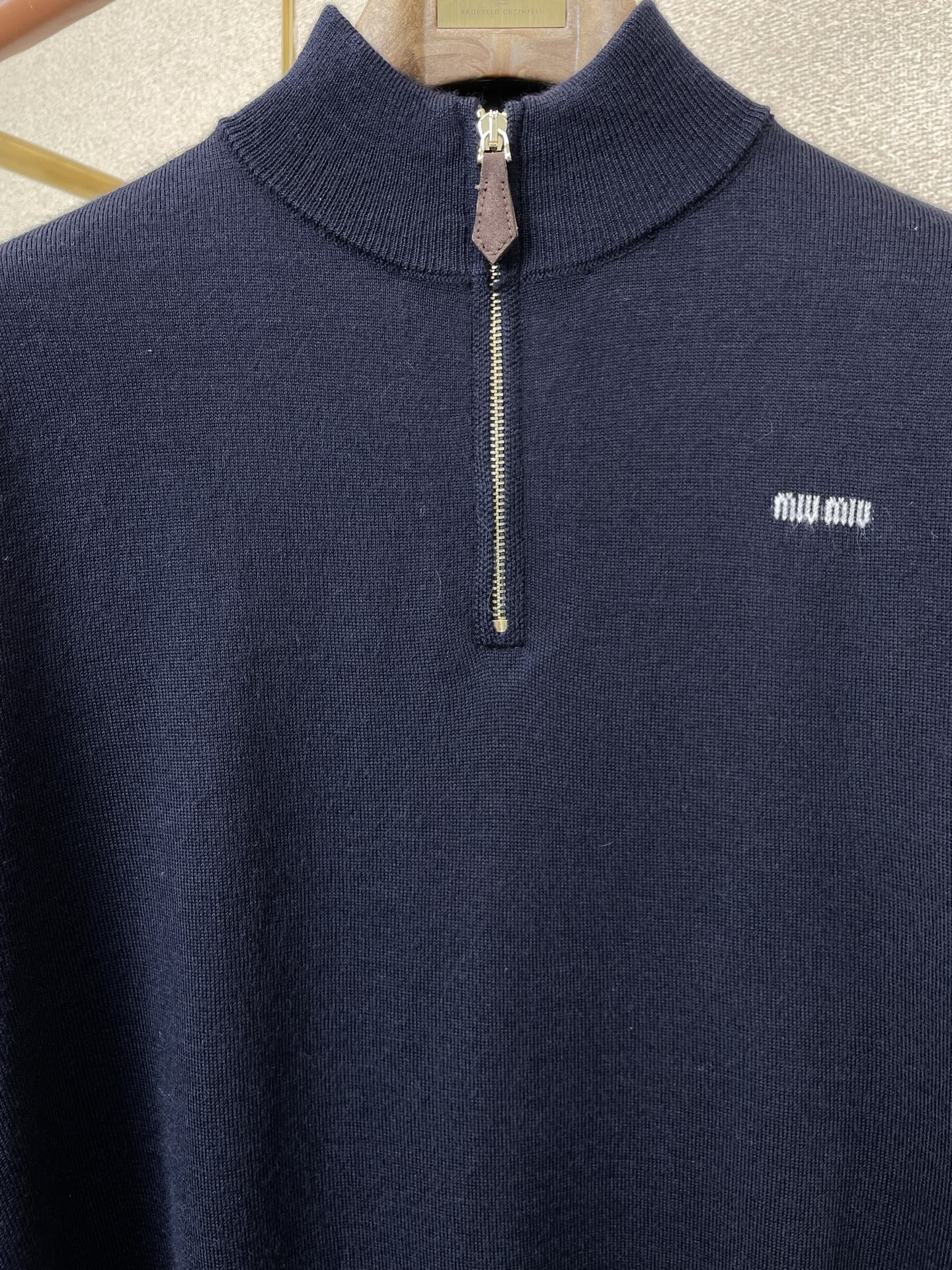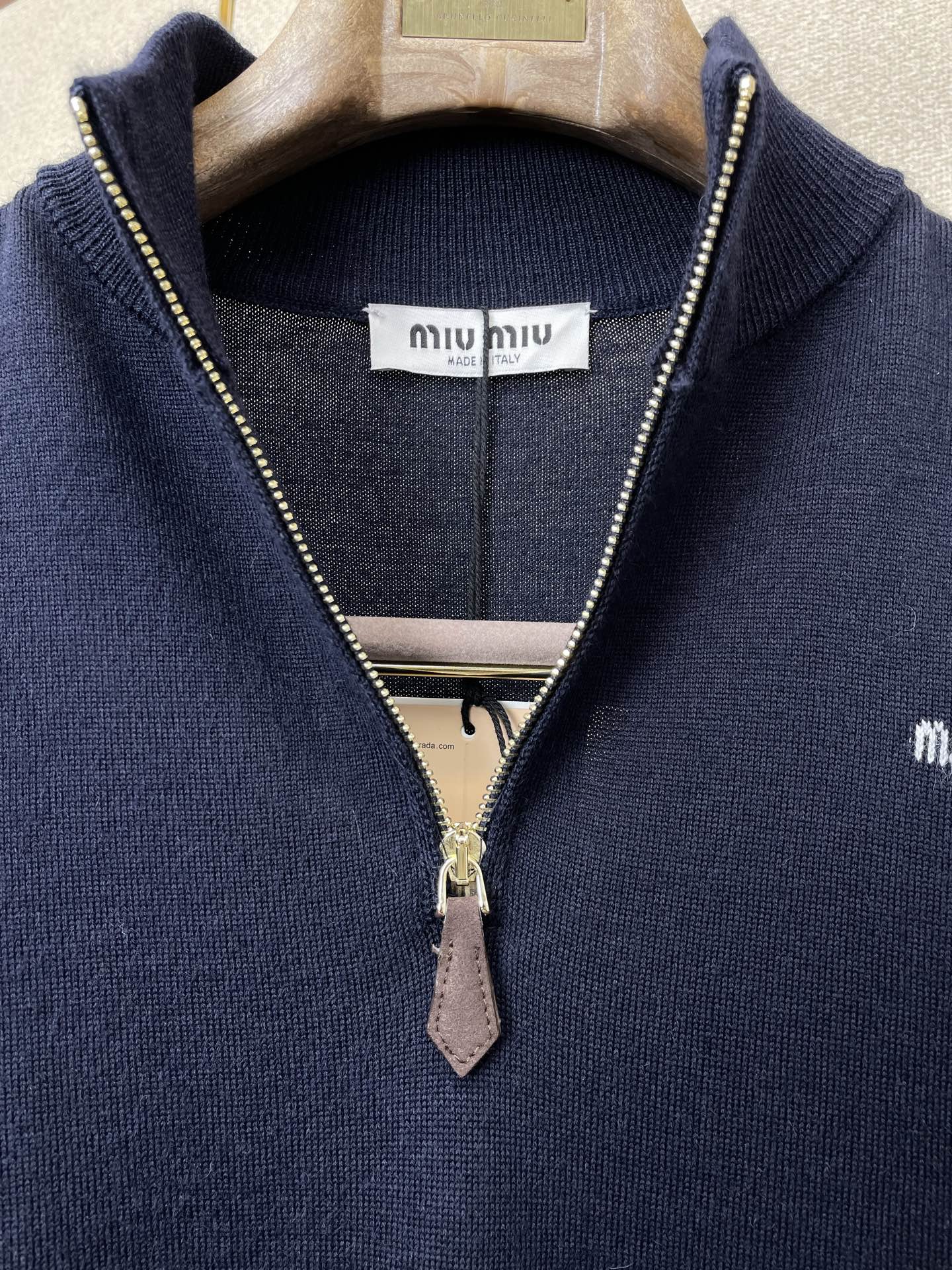 这款衣服是AAAAA 1:1 质量 (非常棒). 使用了和原版一模一样的材料. 商标部分也保持了和缪缪/Miu Miu一样. 图片拍摄是实物衣服拍摄, 您所收到的实物保证和我们图片一模一样.