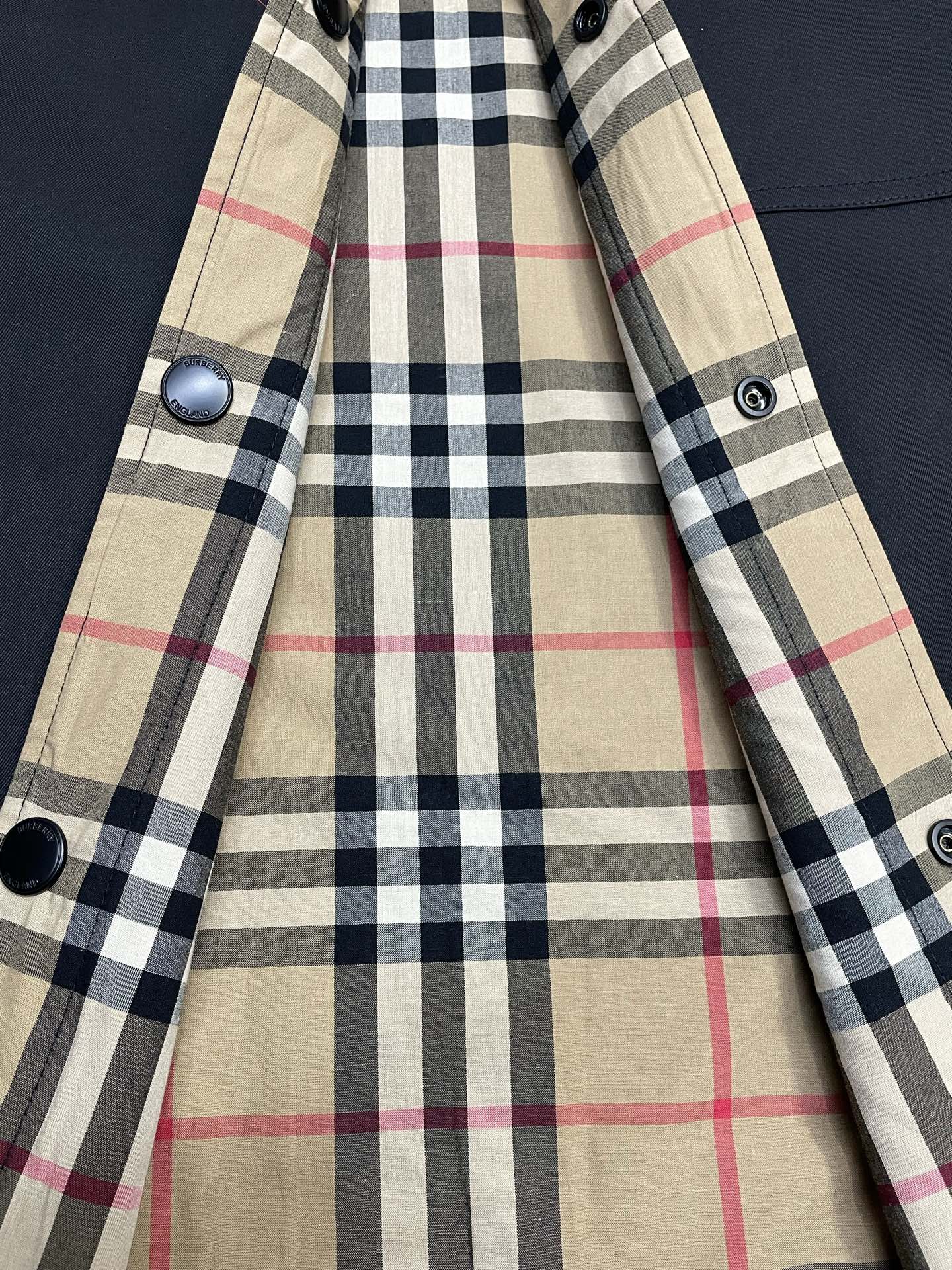 这款衣服是AAAAA 1:1 质量 (非常棒). 使用了和原版一模一样的材料. 商标部分也保持了和巴宝莉/Burberry一样. 图片拍摄是实物衣服拍摄, 您所收到的实物保证和我们图片一模一样.