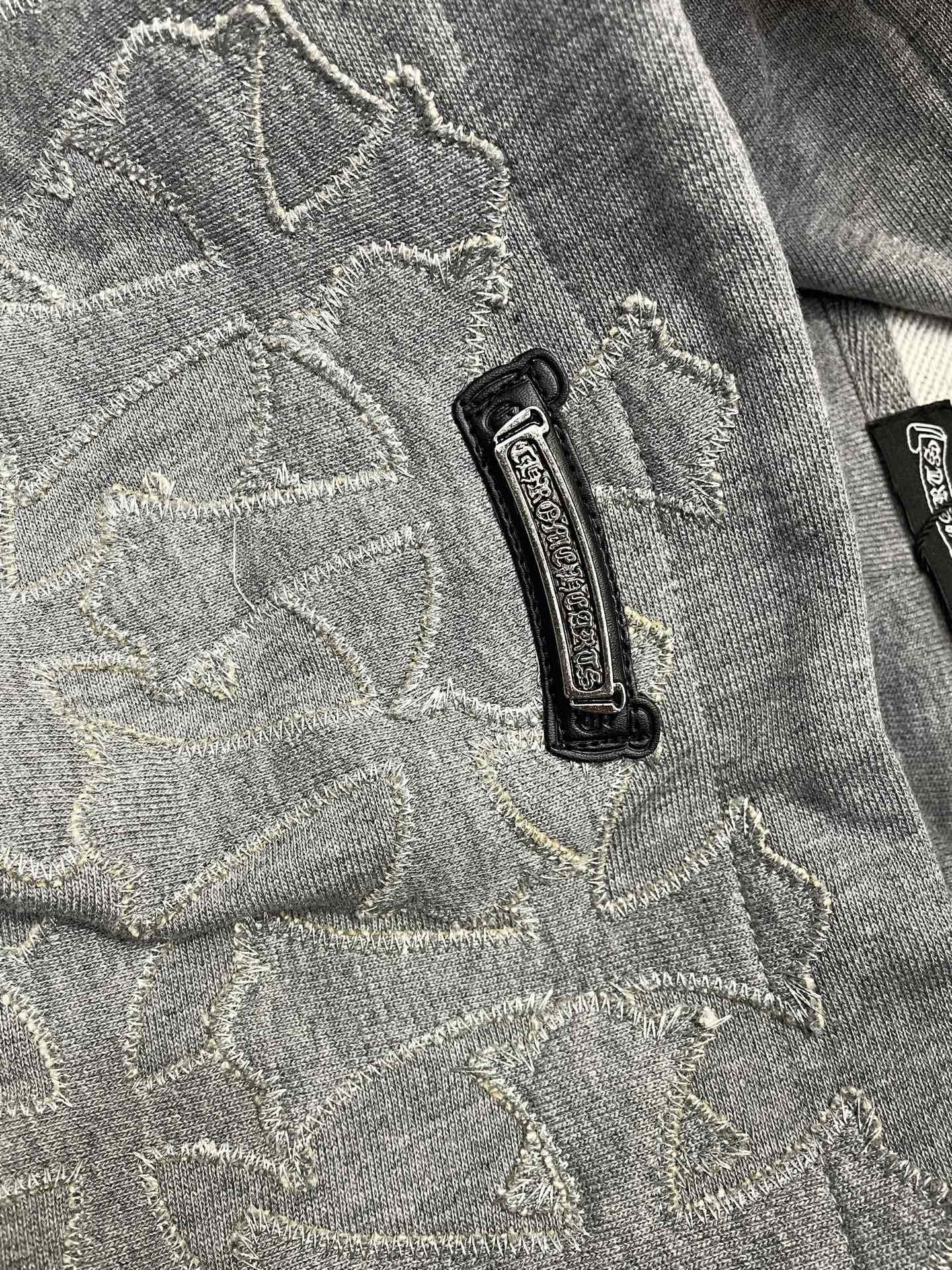 这款衣服是AAAAA 1:1 质量 (非常棒). 使用了和原版一模一样的材料. 商标部分也保持了和克罗心/Chrome Hearts一样. 图片拍摄是实物衣服拍摄, 您所收到的实物保证和我们图片一模一样.
