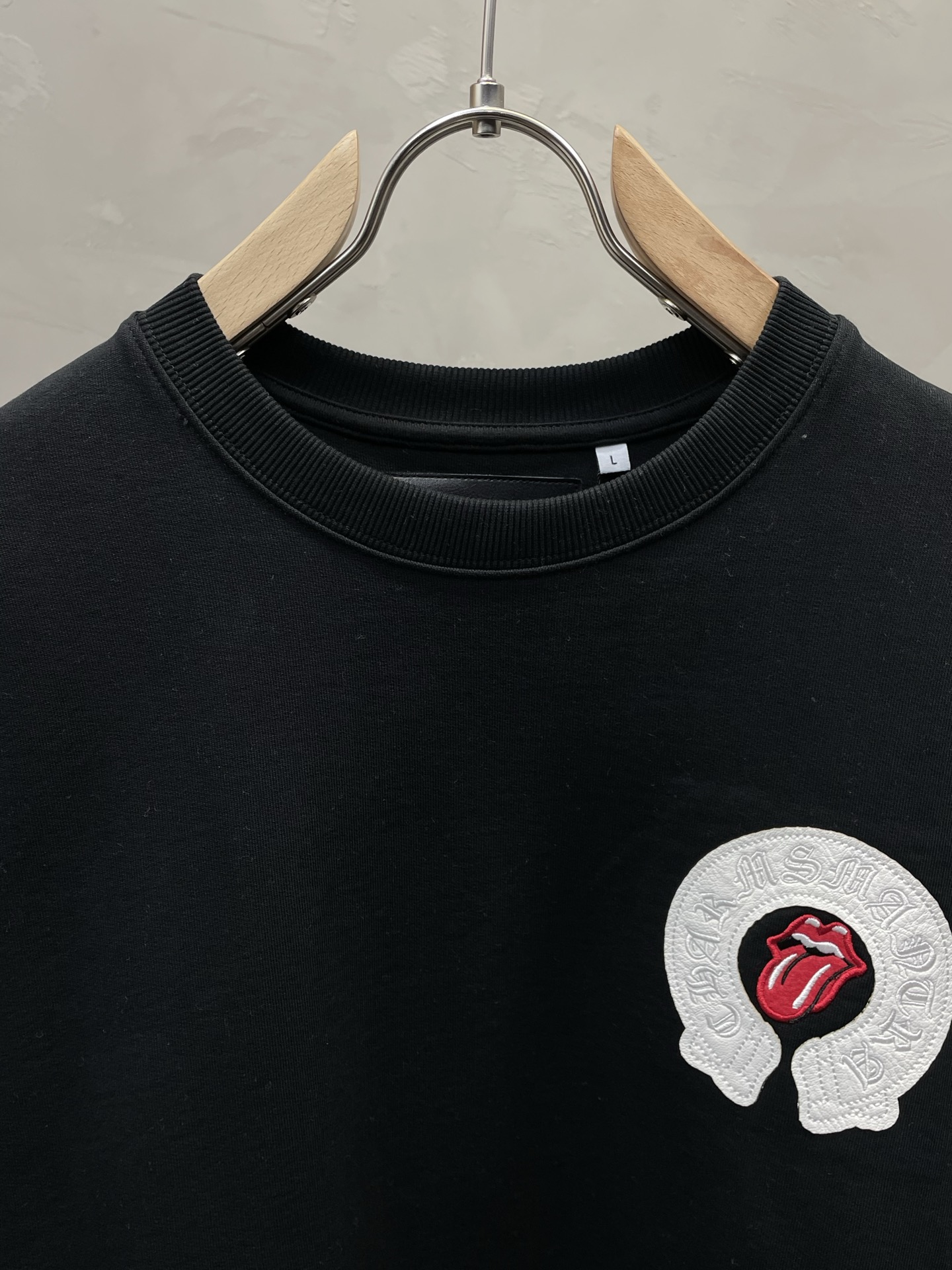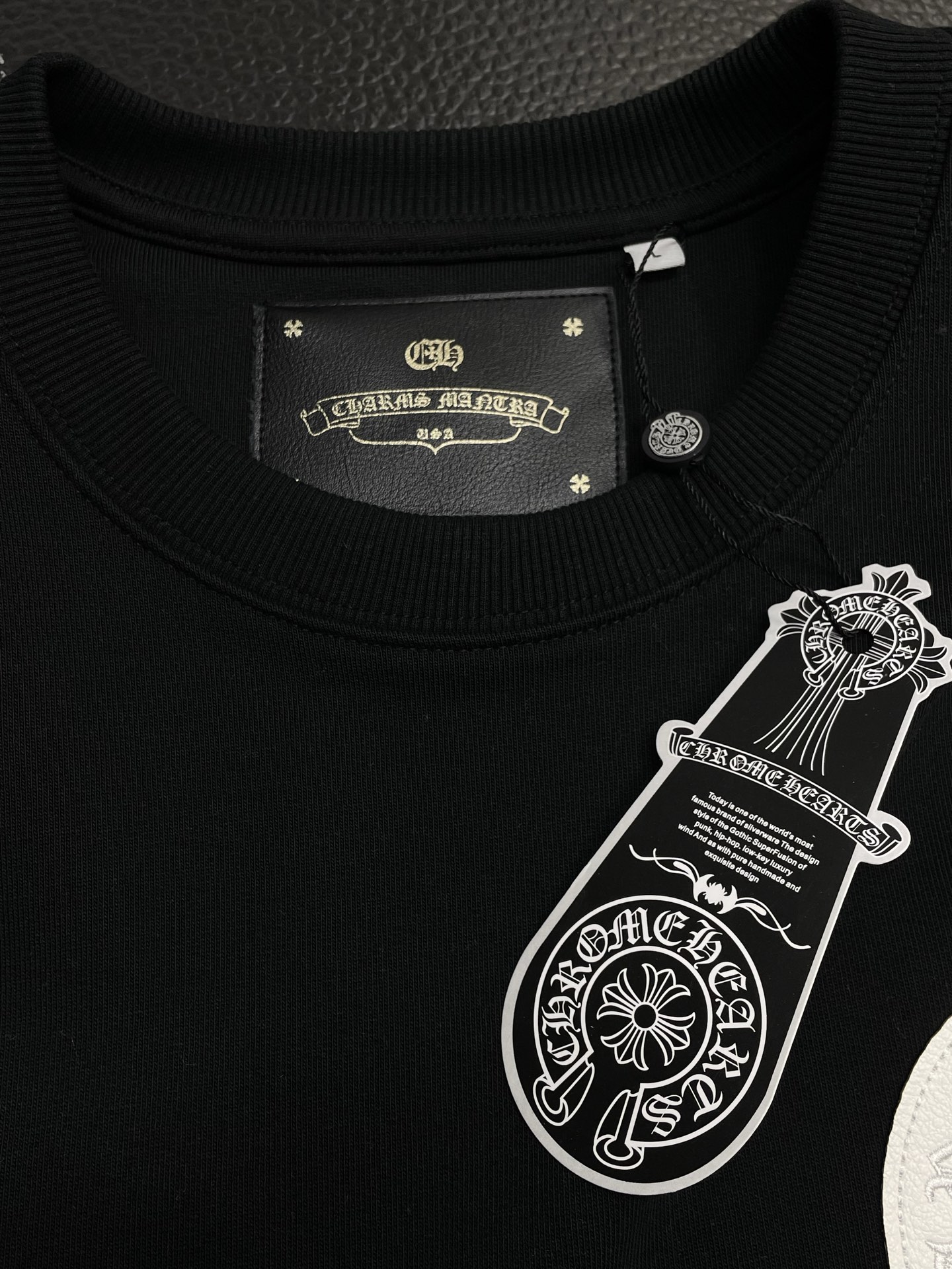 这款衣服是AAAAA 1:1 质量 (非常棒). 使用了和原版一模一样的材料. 商标部分也保持了和克罗心/Chrome Hearts一样. 图片拍摄是实物衣服拍摄, 您所收到的实物保证和我们图片一模一样.