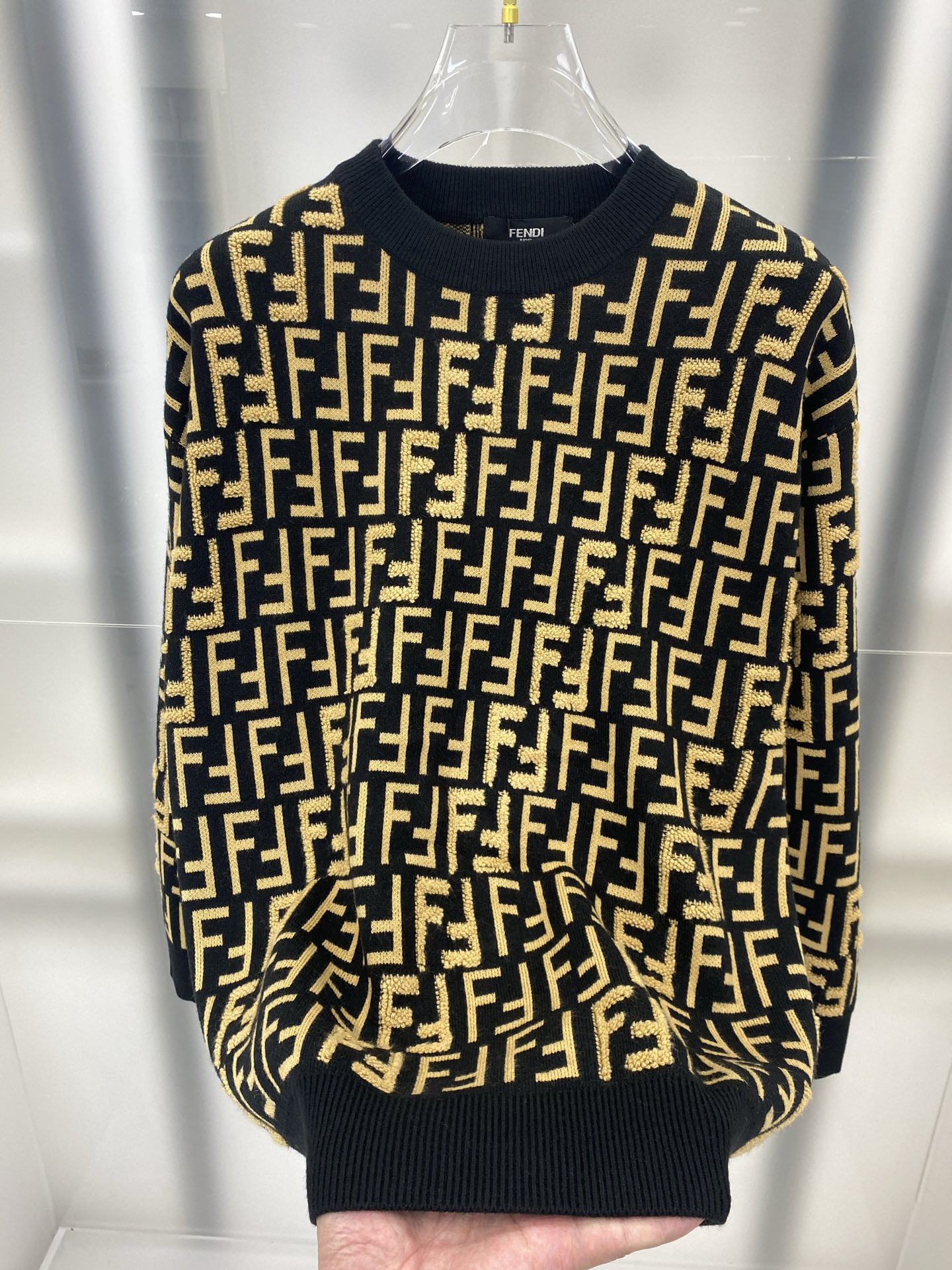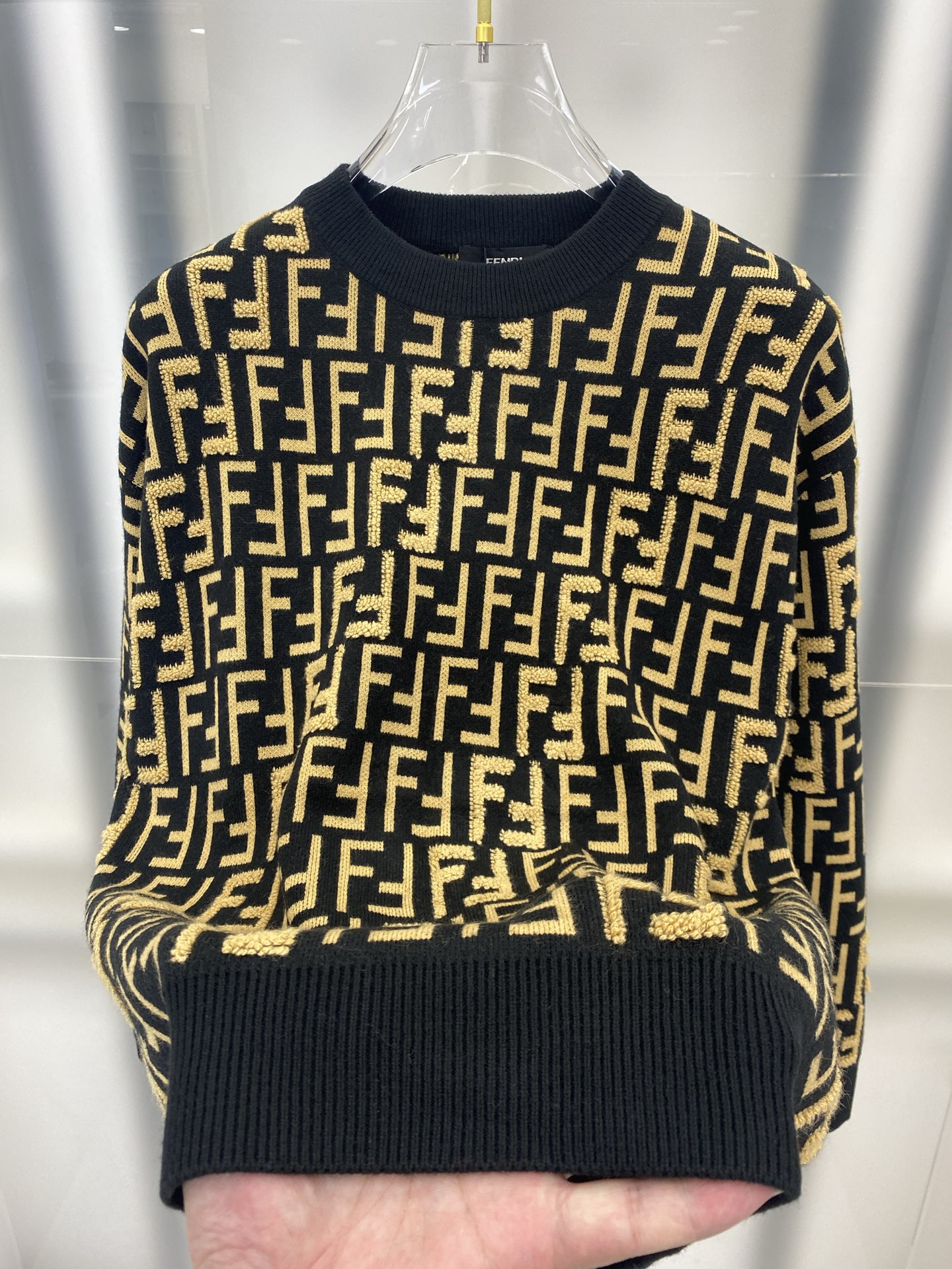 这款衣服是AAAAA 1:1 质量 (非常棒). 使用了和原版一模一样的材料. 商标部分也保持了和芬迪/Fendi一样. 图片拍摄是实物衣服拍摄, 您所收到的实物保证和我们图片一模一样.