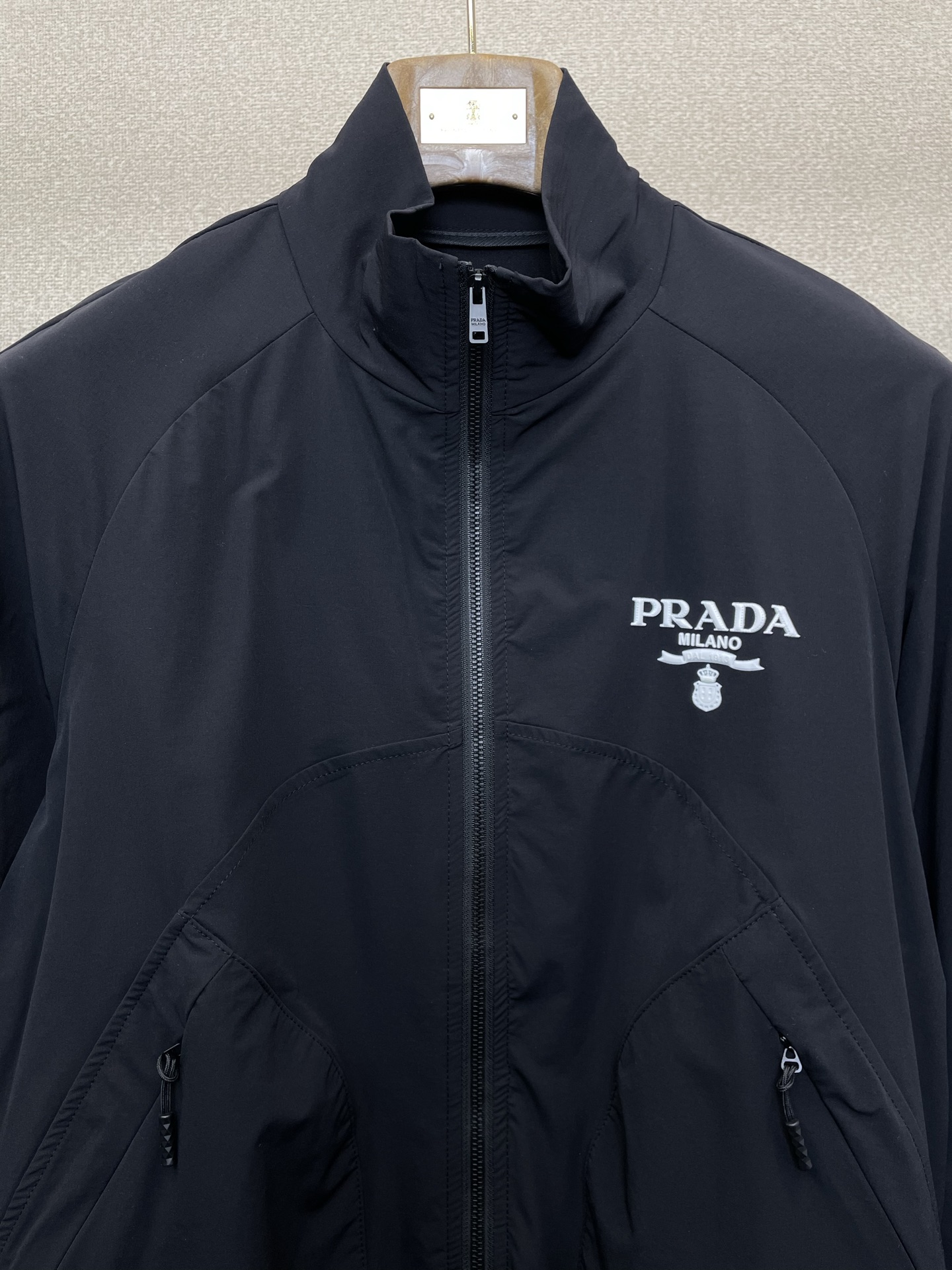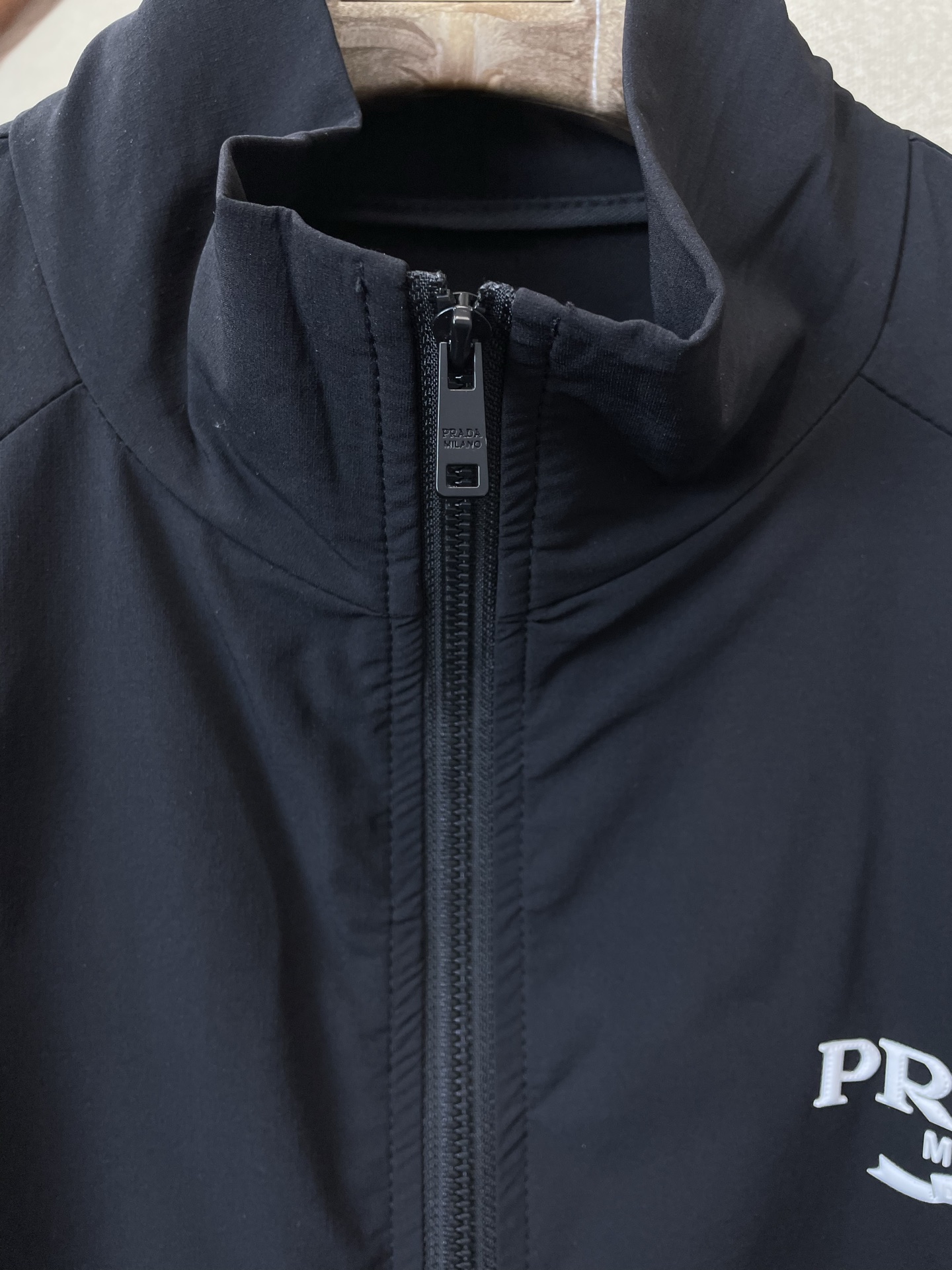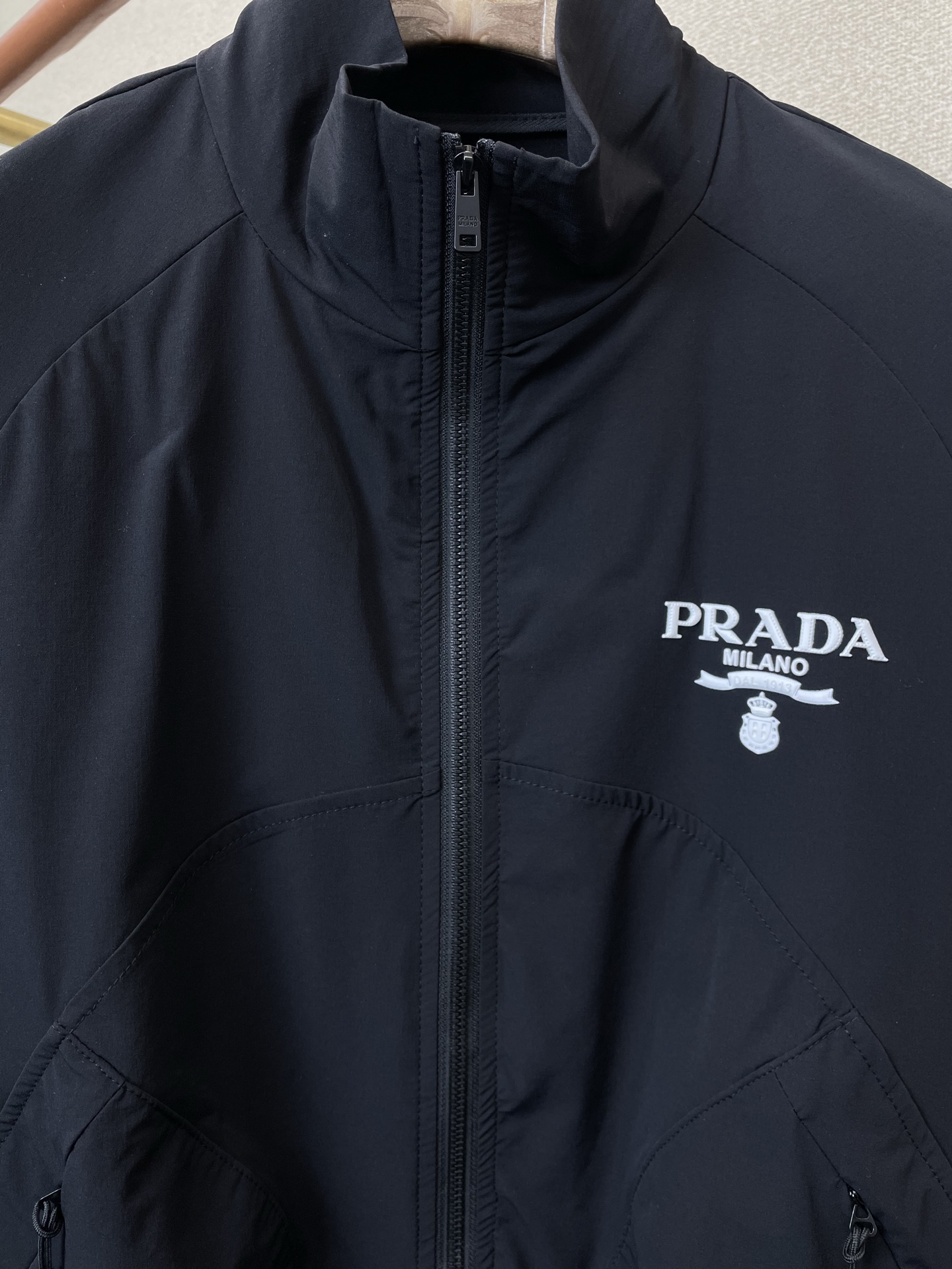 这款衣服是AAAAA 1:1 质量 (非常棒). 使用了和原版一模一样的材料. 商标部分也保持了和普拉达/Prada一样. 图片拍摄是实物衣服拍摄, 您所收到的实物保证和我们图片一模一样.
