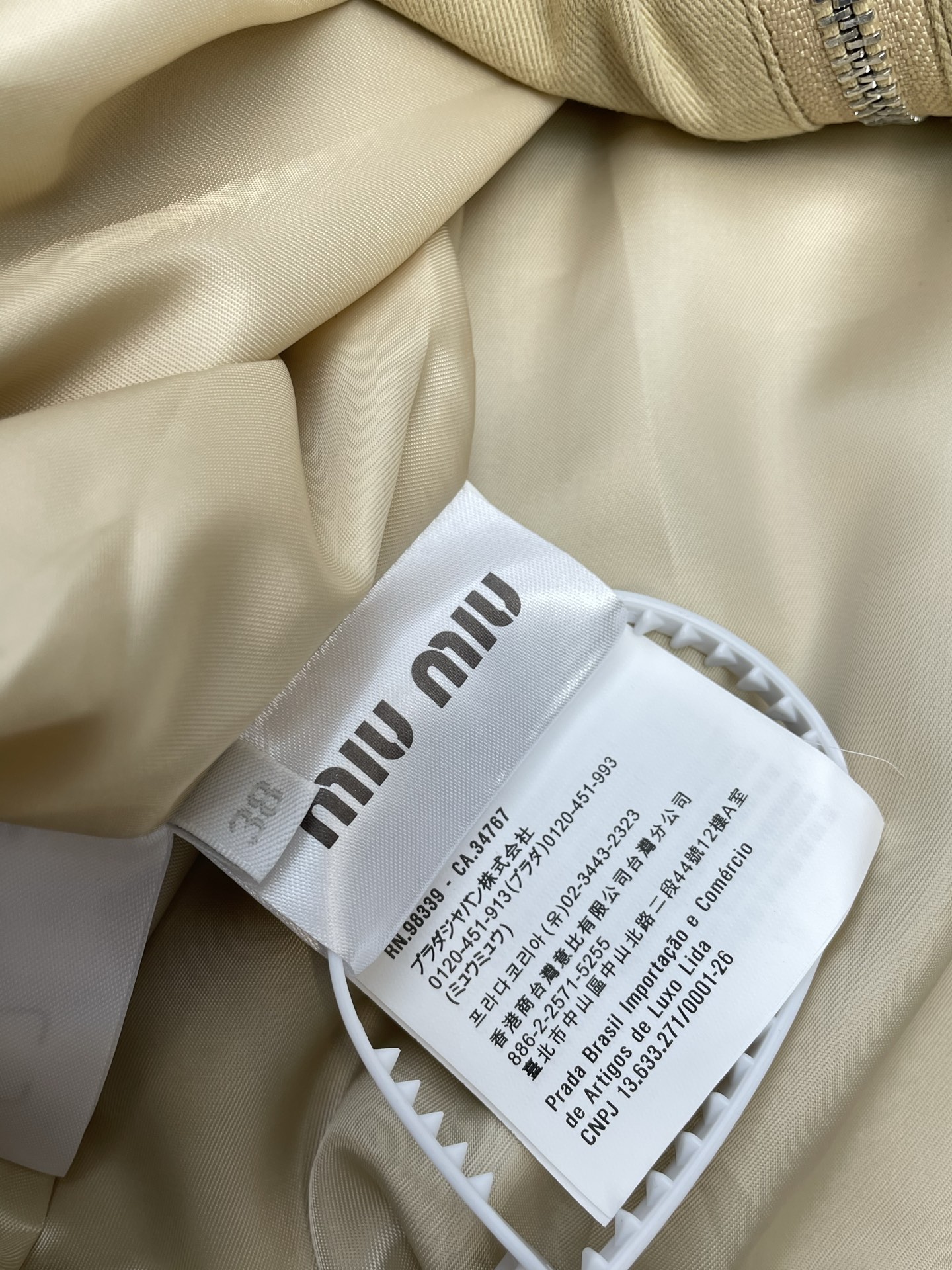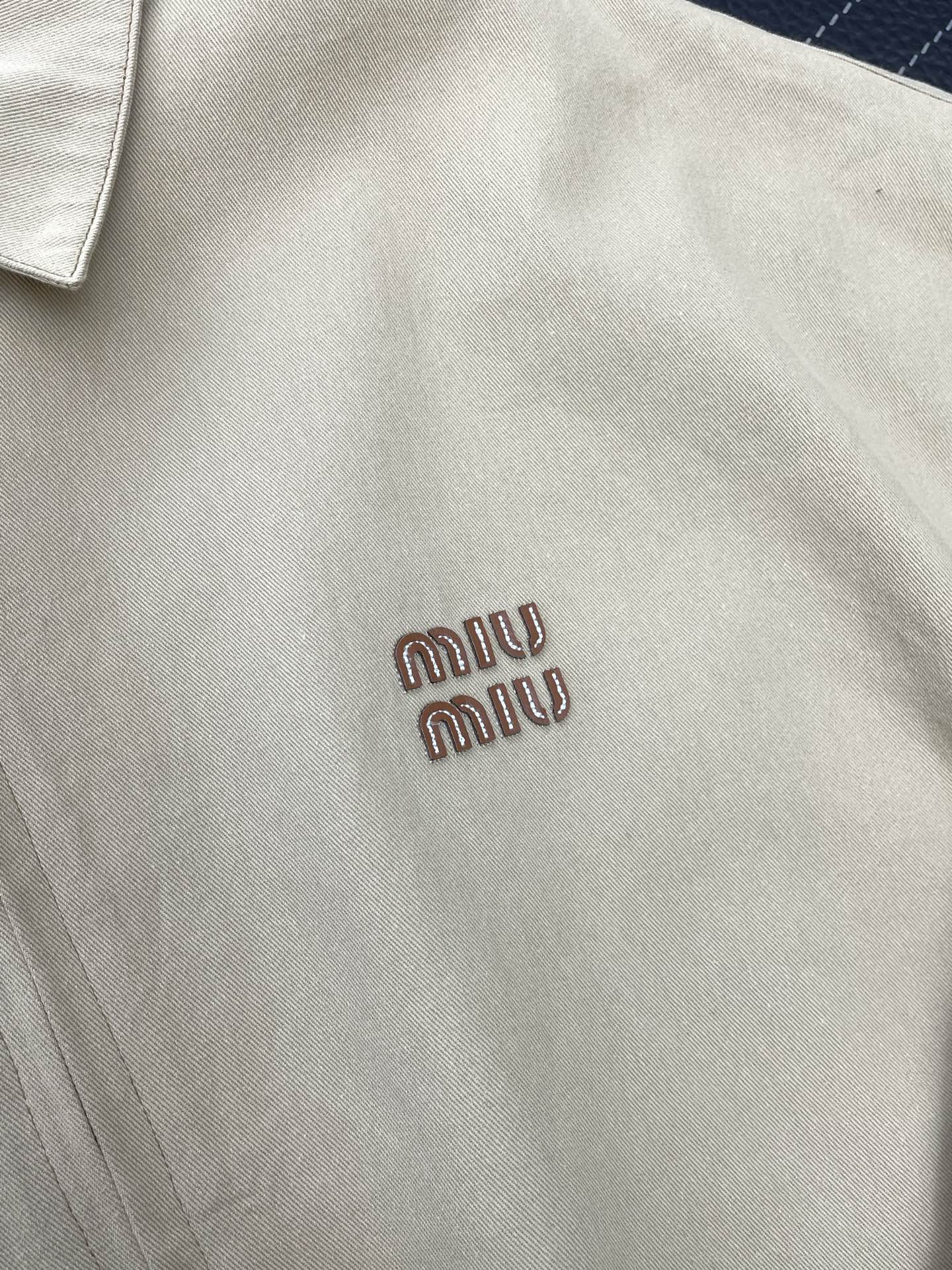 这款衣服是AAAAA 1:1 质量 (非常棒). 使用了和原版一模一样的材料. 商标部分也保持了和缪缪/Miu Miu一样. 图片拍摄是实物衣服拍摄, 您所收到的实物保证和我们图片一模一样.